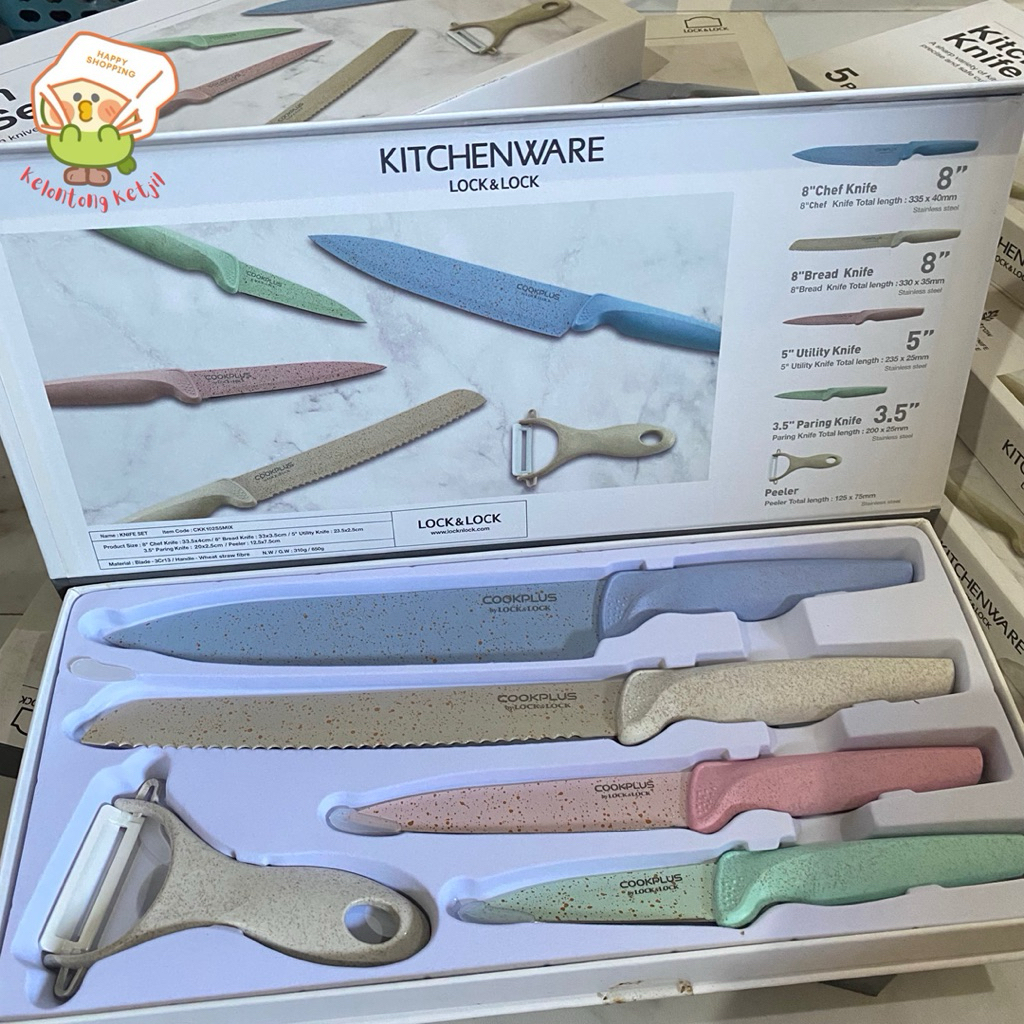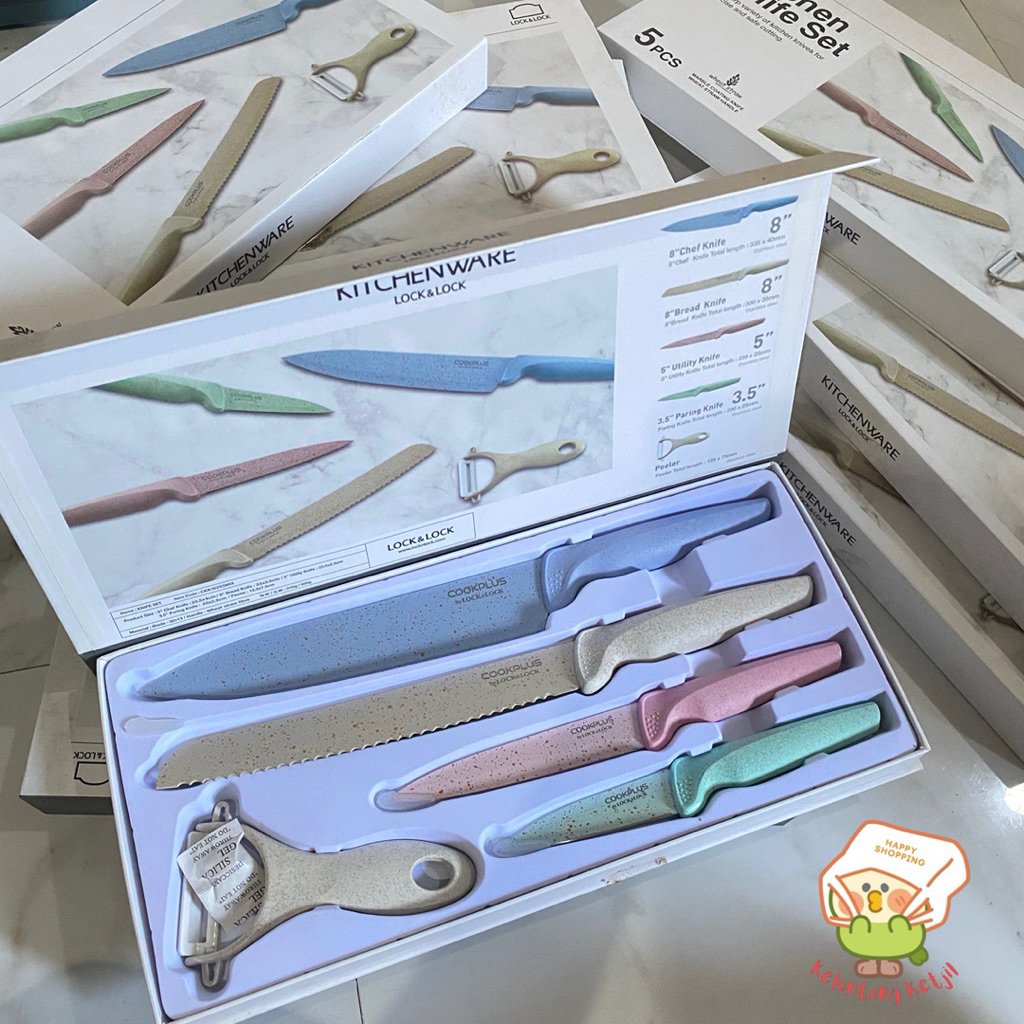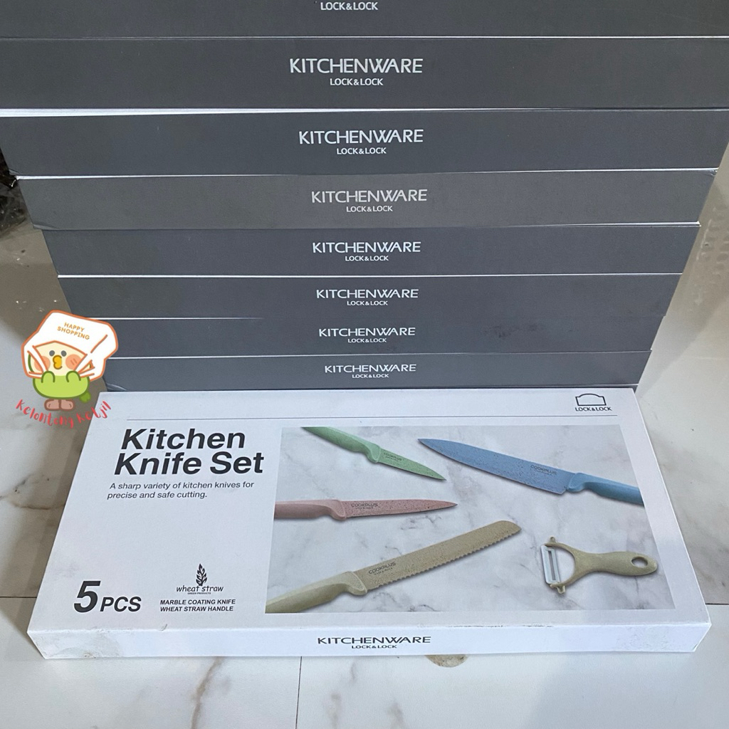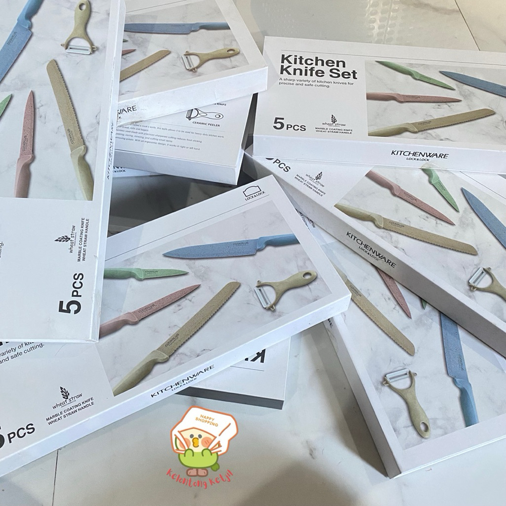 Lock&Lock - KITCHEN KNIFE SET / PISAU SET DAPUR MARBLE COATING ( 1 box isi 5pcs )Termasuk PEELER / PENGIRIS