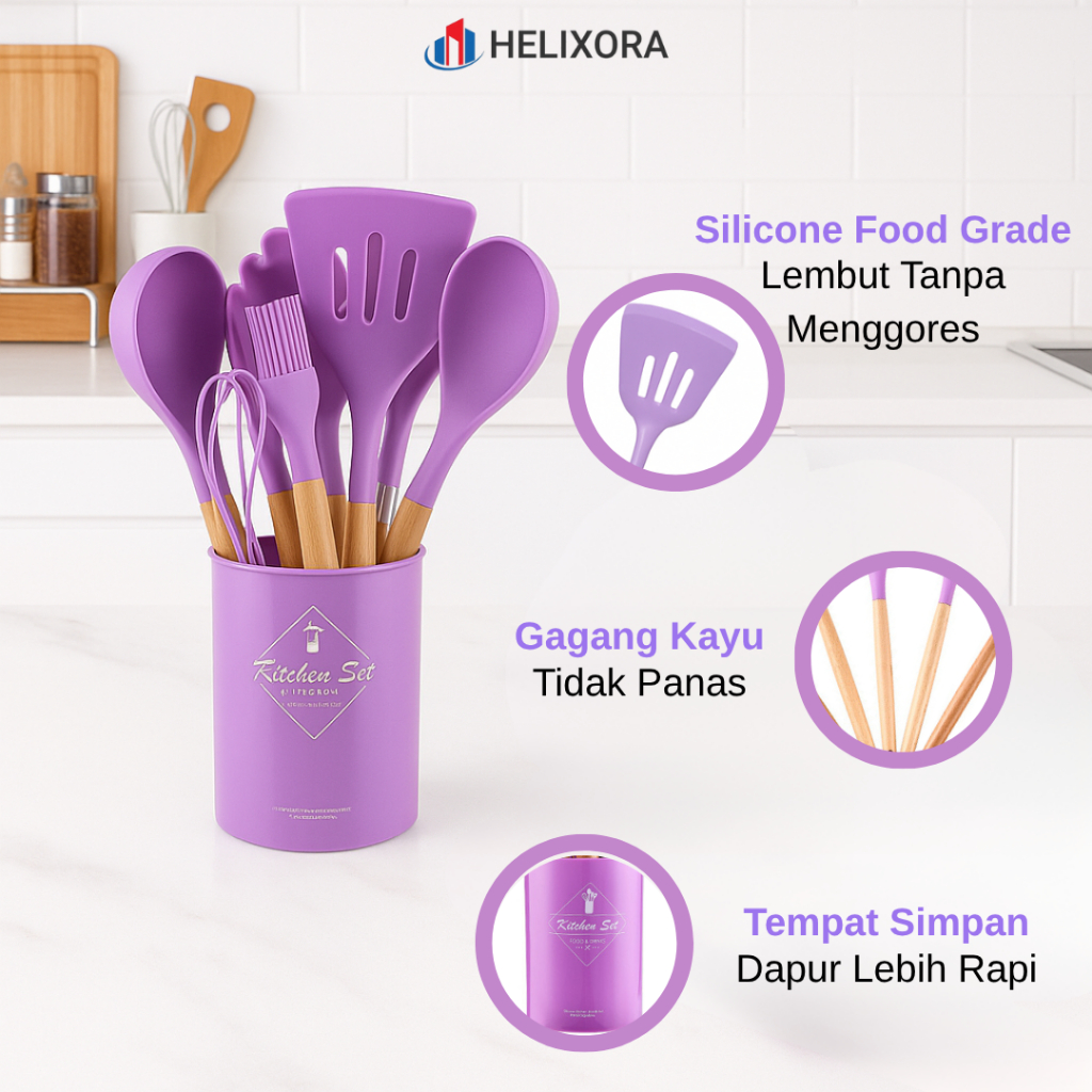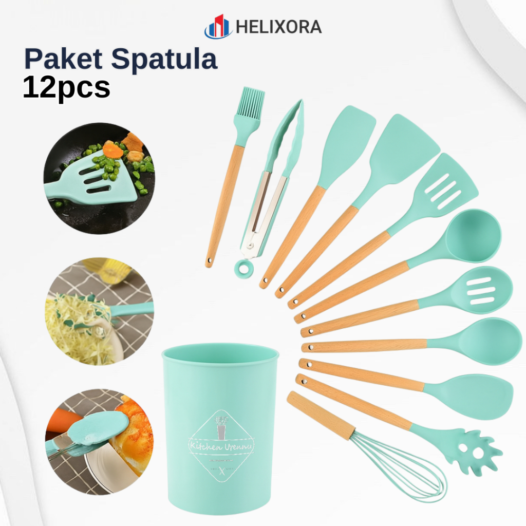 HELIXORA B4 Set Alat Masak Silikon 12 in 1 – Tahan Panas & Anti Lengket, Mudah Dibersihkan