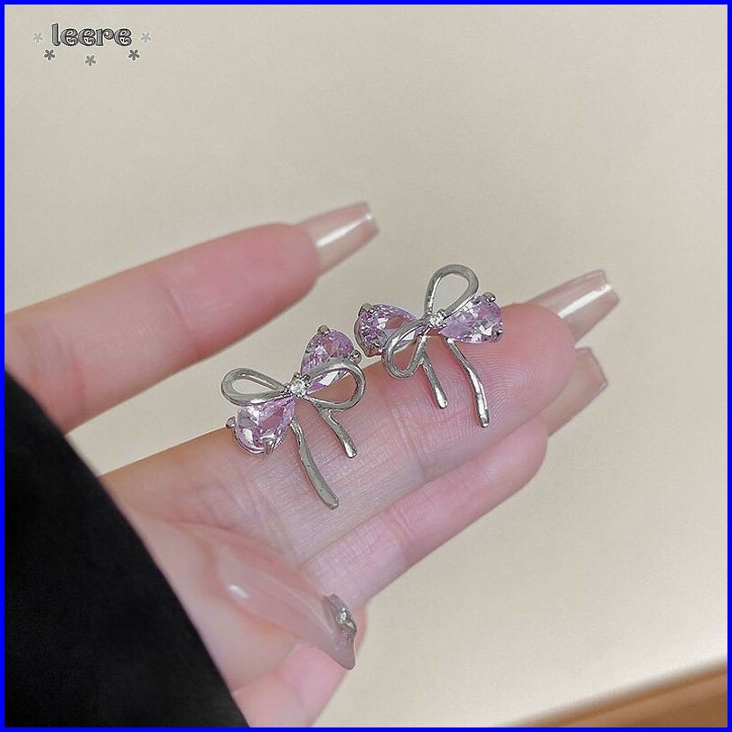 Anting Zirkon Pita Merah Muda Untuk Wanita Anting Temperamen Lembut Dan Manis Anting Kelas Atas -le