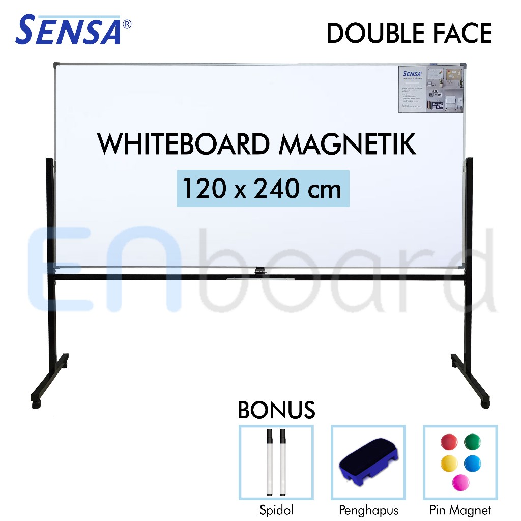 Papan Tulis Whiteboard / White Board Standing Magnet Double Face Sensa 120 x 240 cm