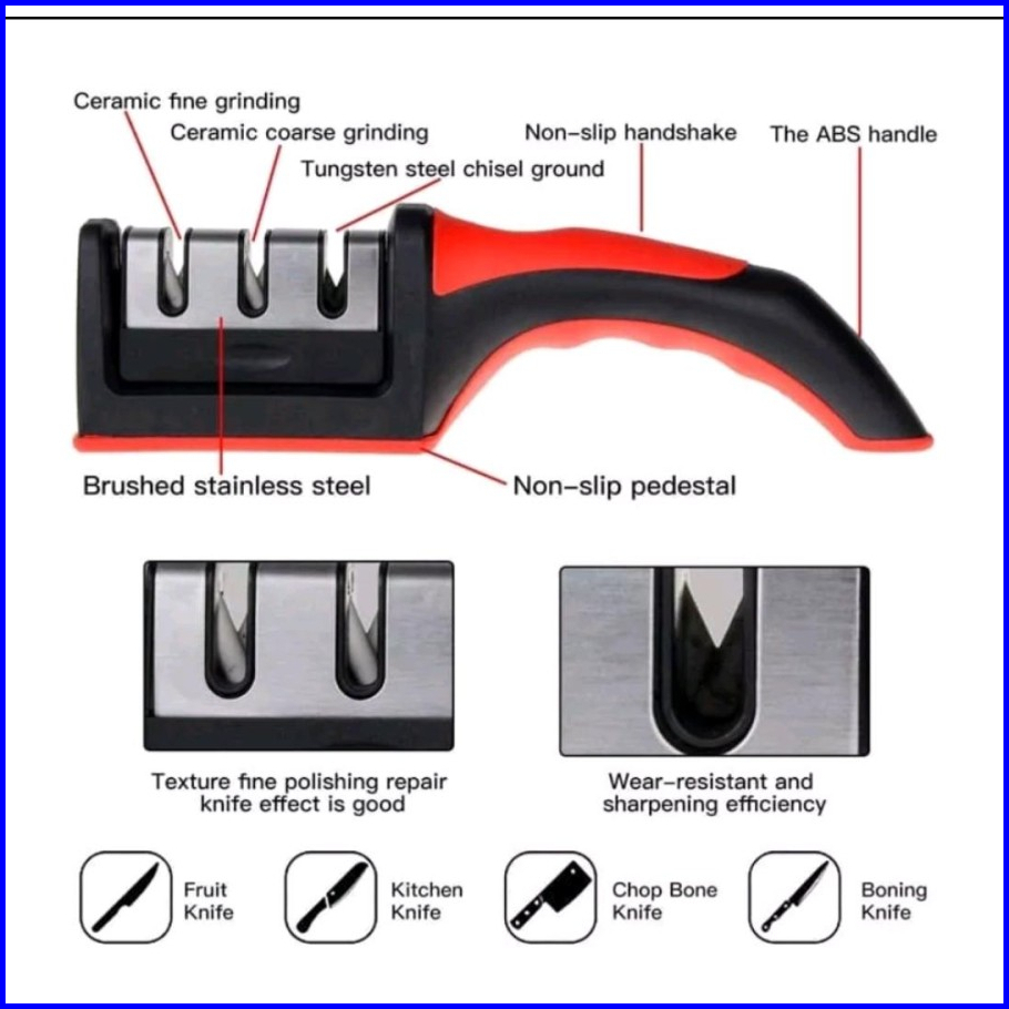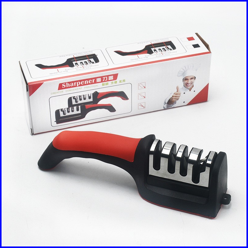 Crown Alat Asahan Pisau Gunting 3 Step Knife Sharpener Pengasah Pisau Dapur Stainless Steel Free Buble