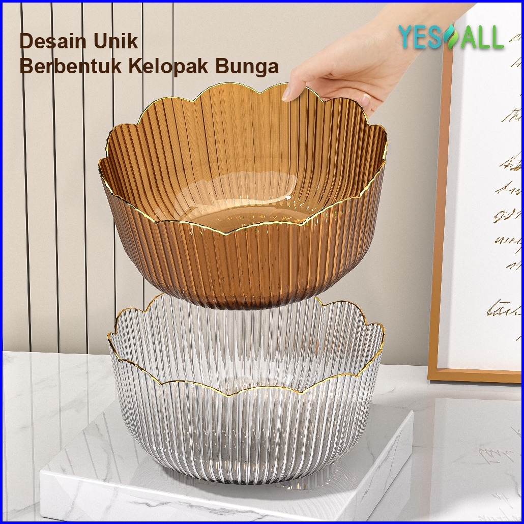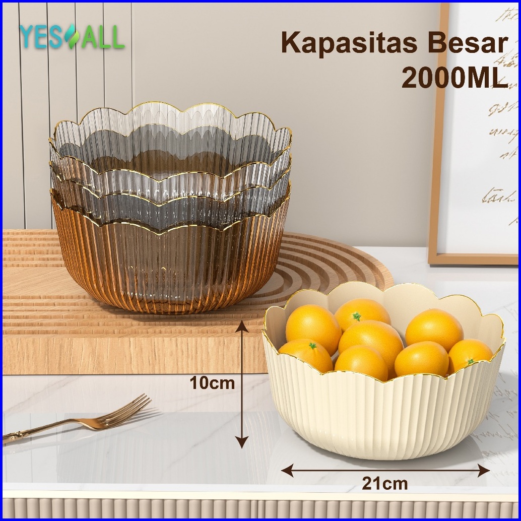 Yesall Luxury Transparent Salad Bowl With Rim - Mangkok Aesthetic Mangkok Plastik Bening Transparan List Unik Mangkuk Sn