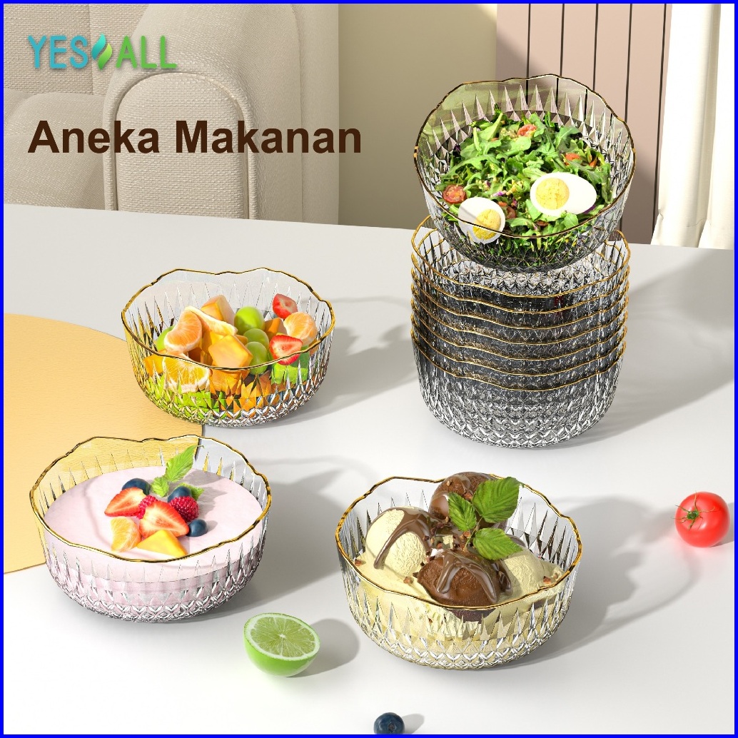 Yesall Mangkok Diamond Motif Ombak Transparan Aesthetic - Transparan Bowl List Transparent Mangkuk Salad Sayur List Mang