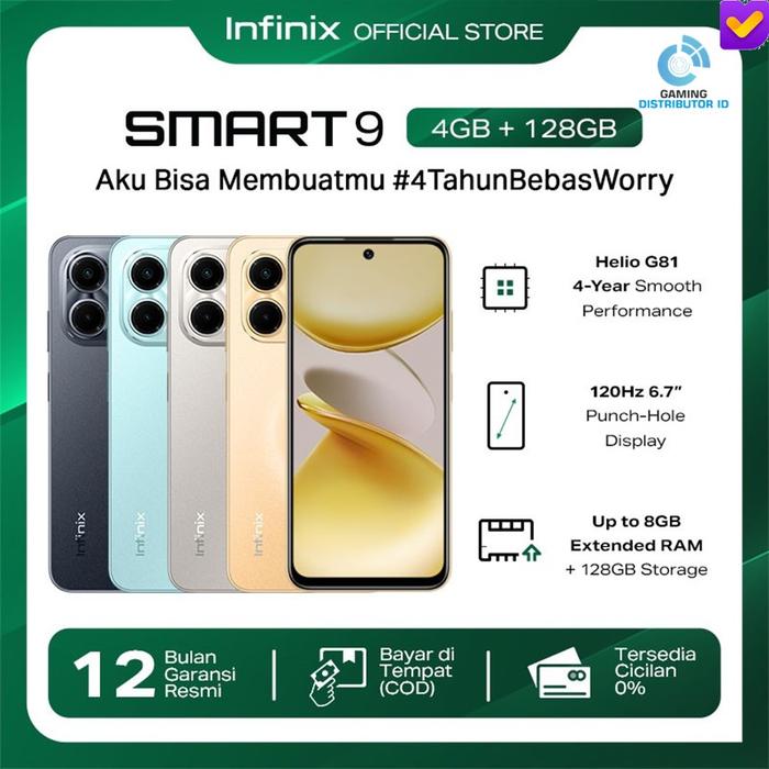 [Star]Infinix Smart 9 4/128GB - Up to 8GB Extended RAM - 6.7 inch 120Hz Punch Hole Display - Helio G81 - 5000 mAh - 4/64
