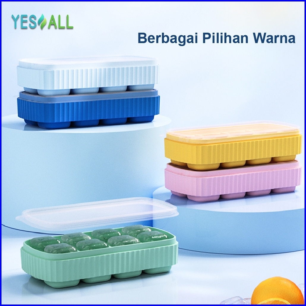 Yesall Cetakan Es Batu Silikon Tutup - Ice Maker Pembuat Es Batu Mini Silicone Portable Kotak Penutup - 8 Sekat