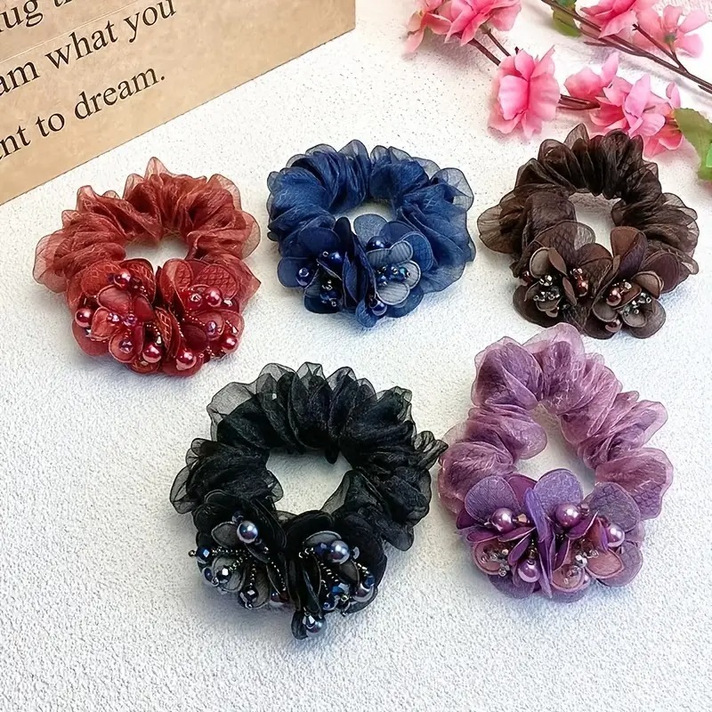 Flower Hair Scrunchie Double Layer Kunciran Tebel Tali Rambut Renda - JP48