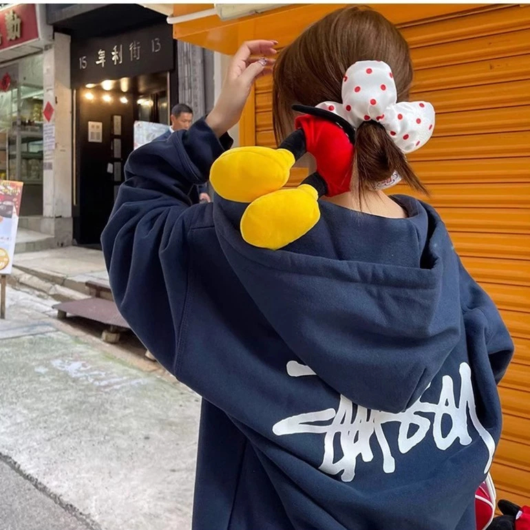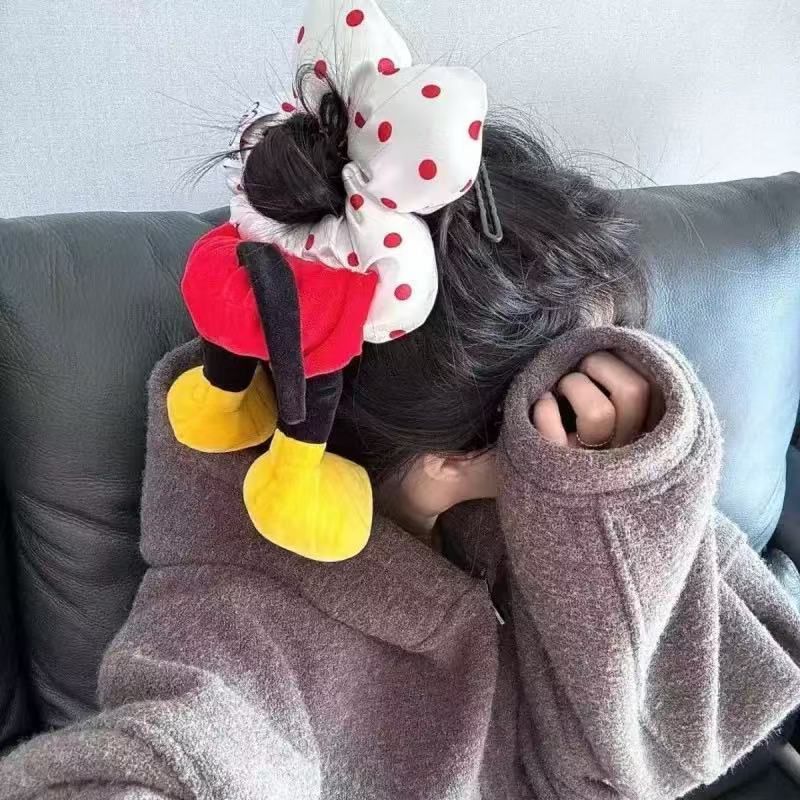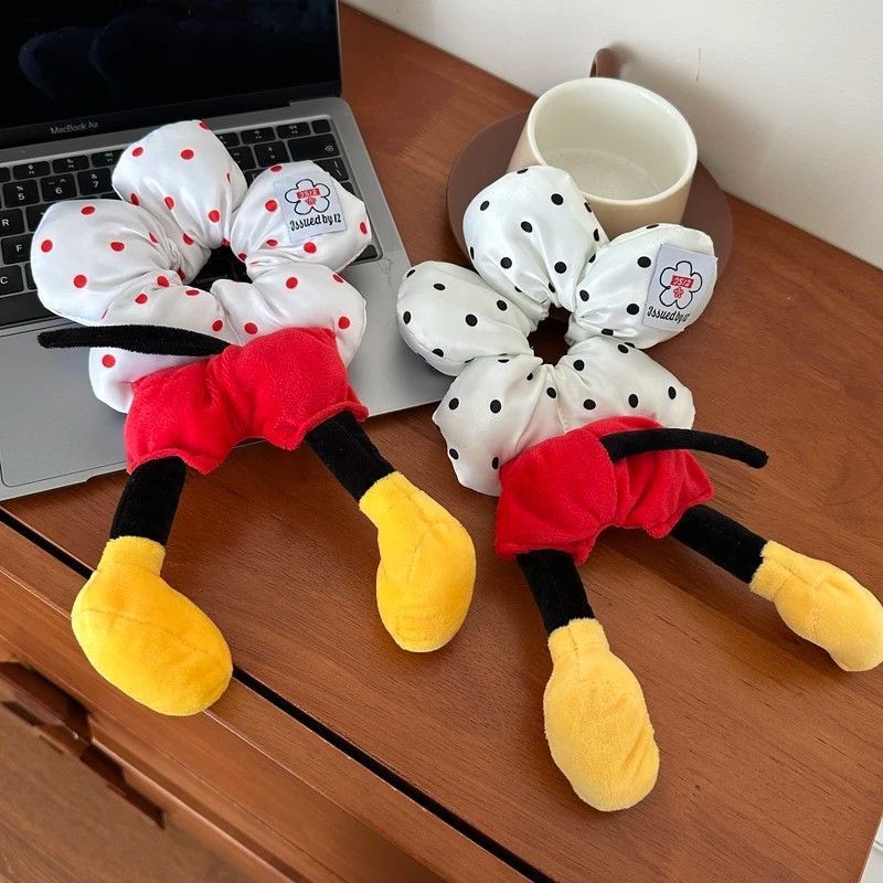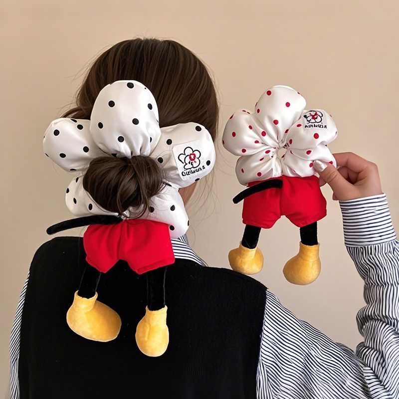 Ikat Rambut Scrunchie Motif Bunga Mickey Mouse Karet Rambut Premium Lucu Jumbo