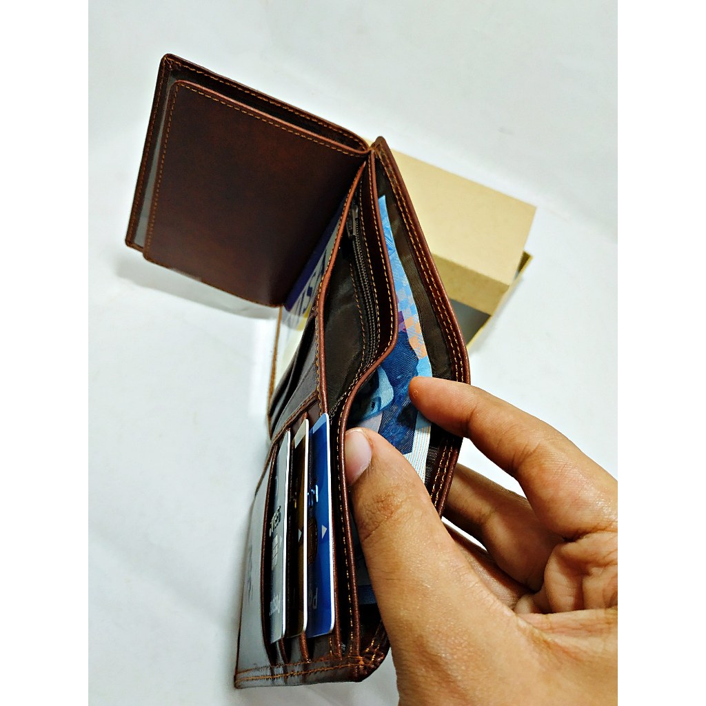 Buffalo Dompet Pria 100% Kulit Asli Slot Kartu Banyak el Lipat Casual - Coklat Brown Cokelat