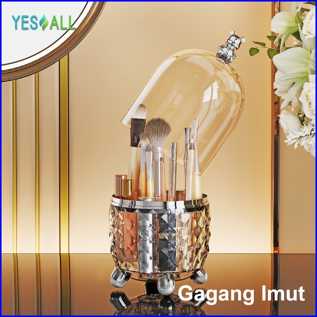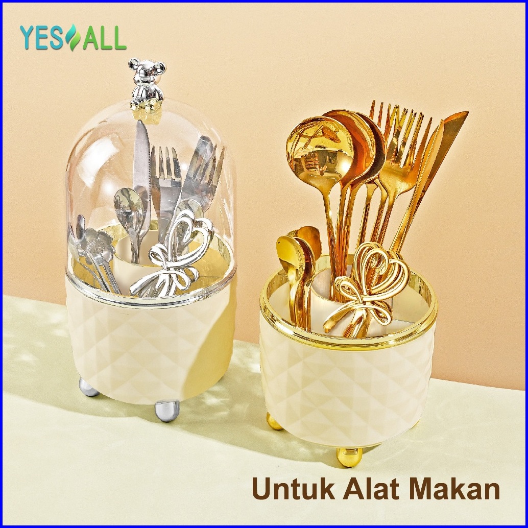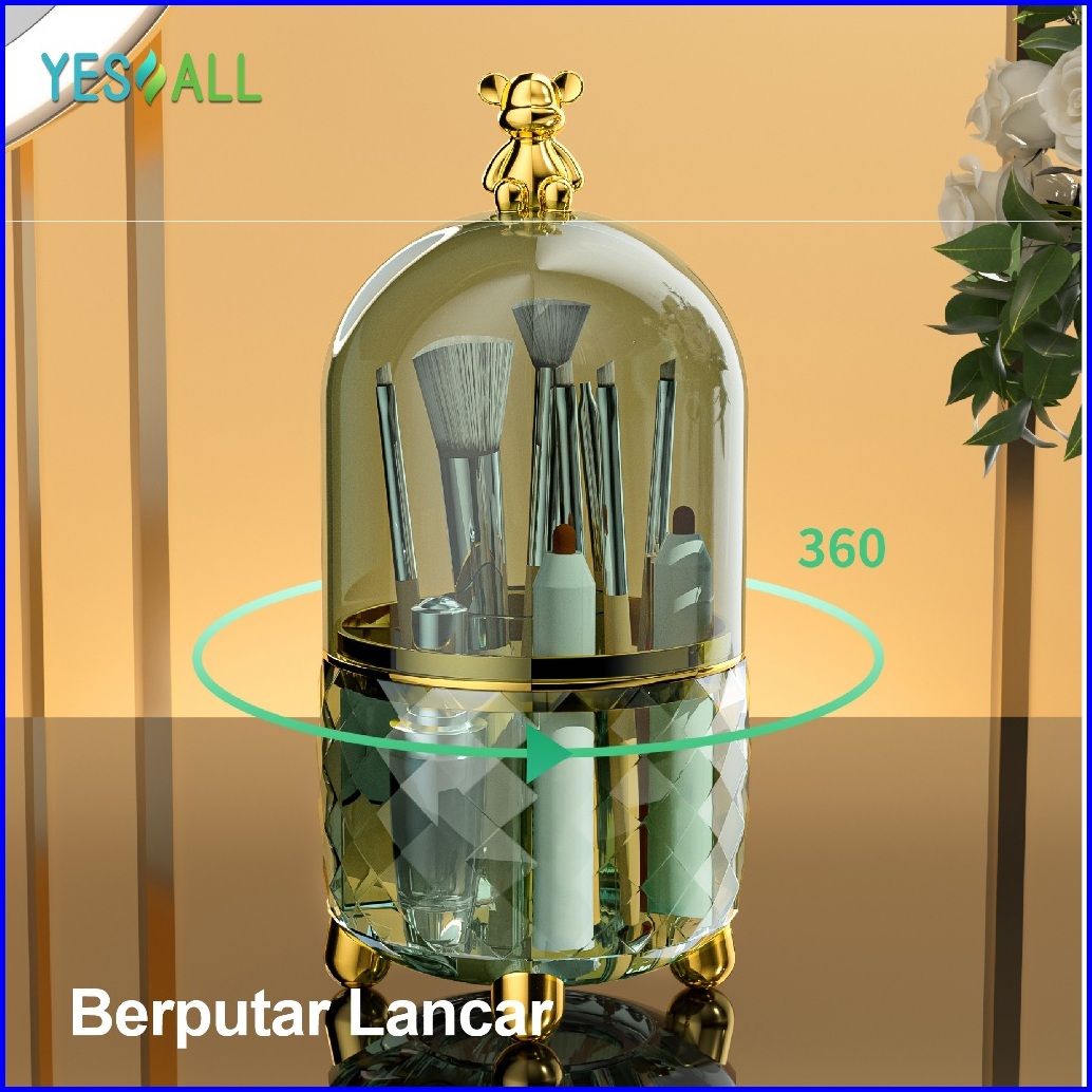 Yesall Rak Kosmetik Makeup Crystal Transparan Aesthetic Rak Kosmetik Putar 360 Derajat Aesthetic Tempat Sendok Garpu Ter