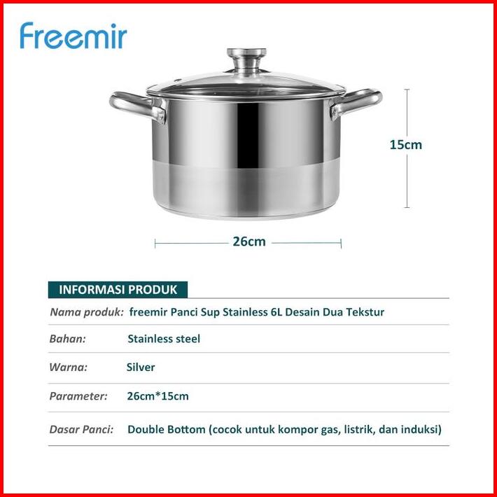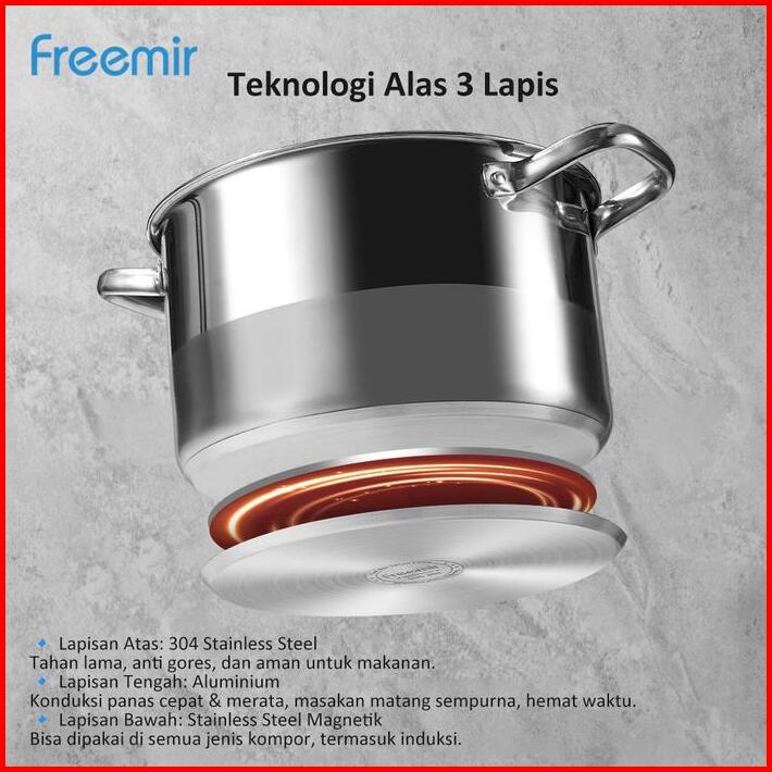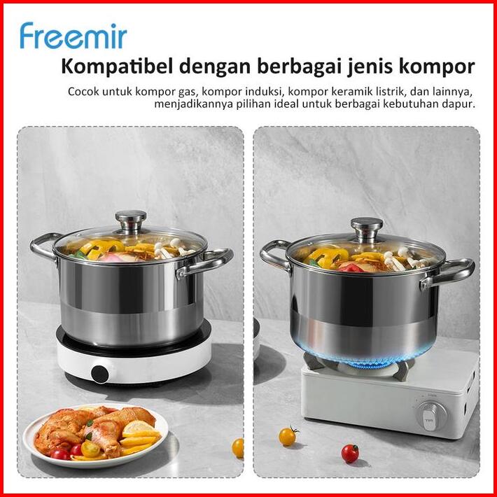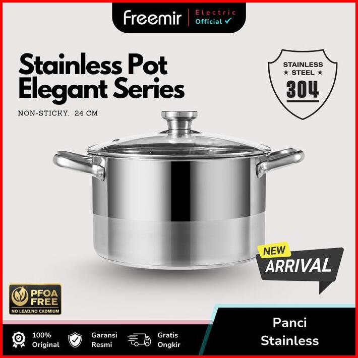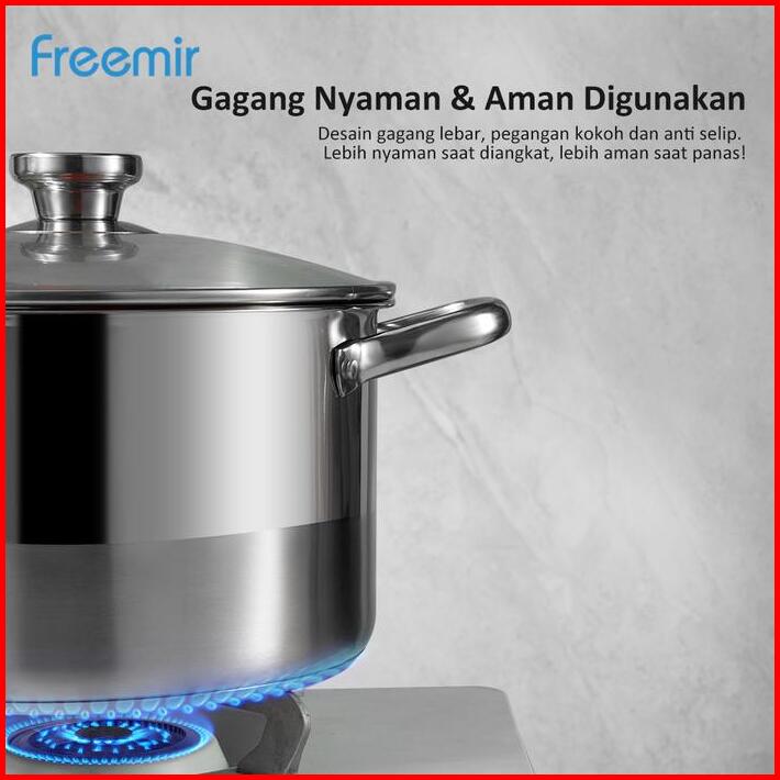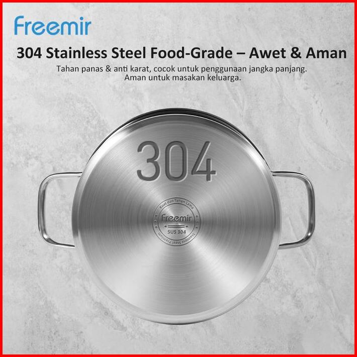 New Freemir Panci Elegant 24 Cm Stainless 304 Double Bottom Kapasitas Jumbo 6 Liter Anti Lengket