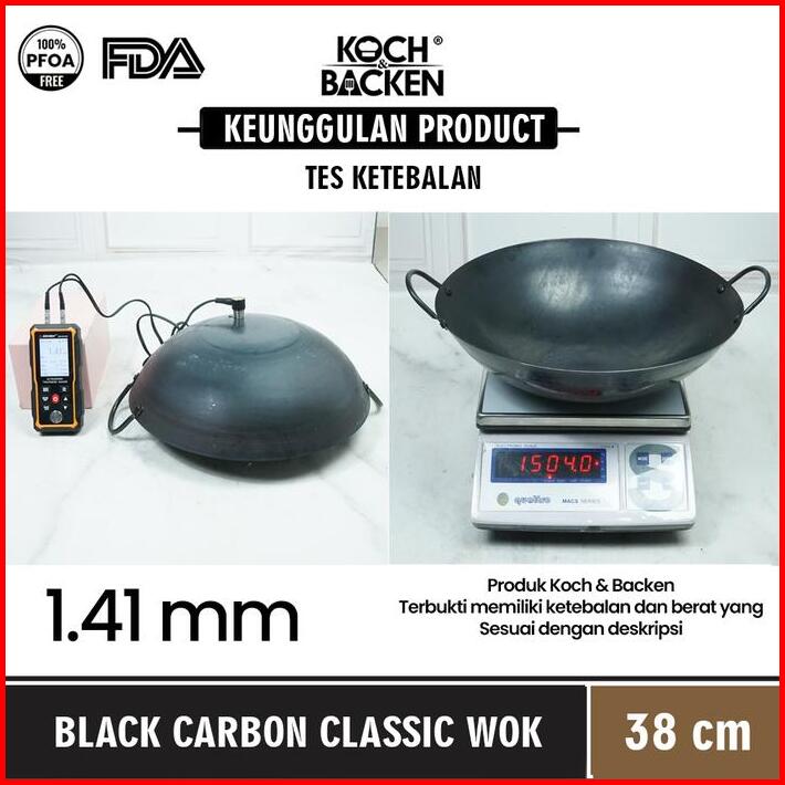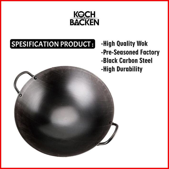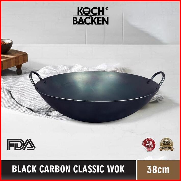Koch Backen Black Carbon Steel Classic Wok Round Bottom 38cm