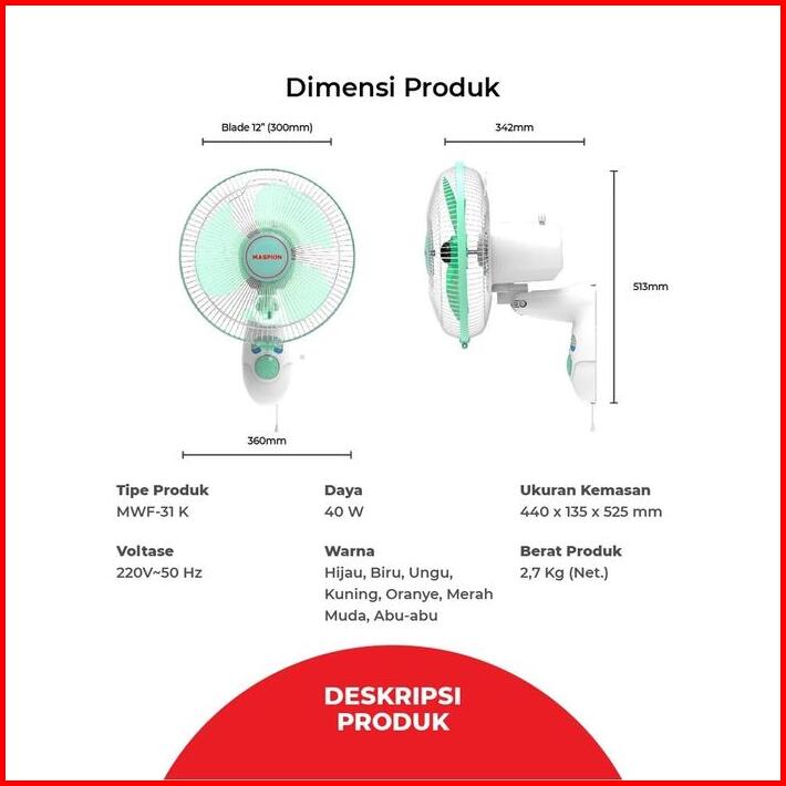 Maspion Kipas Angin Dinding Wallfan 12 Mwf 31k Garansi Resmi