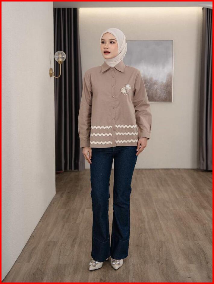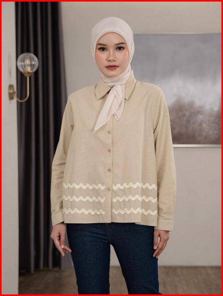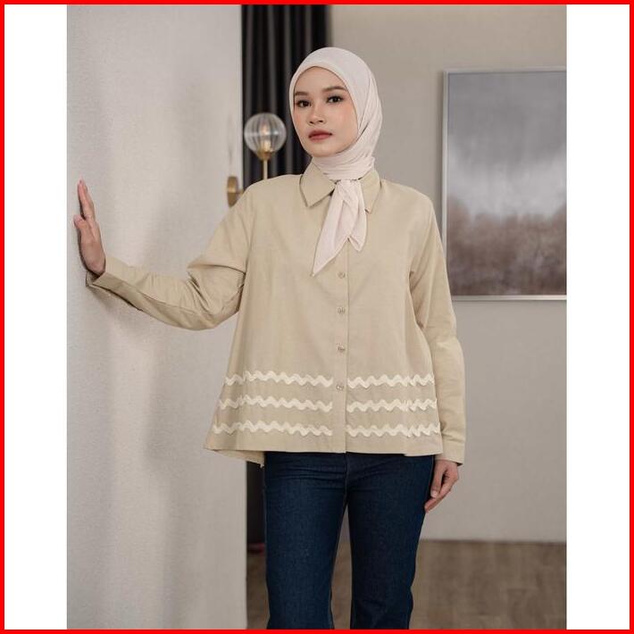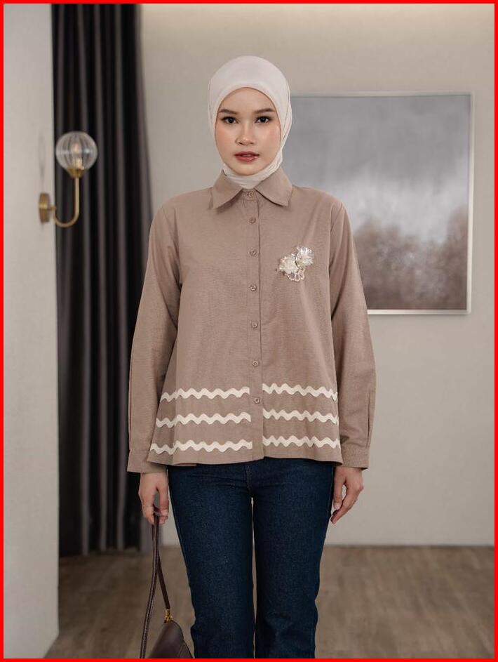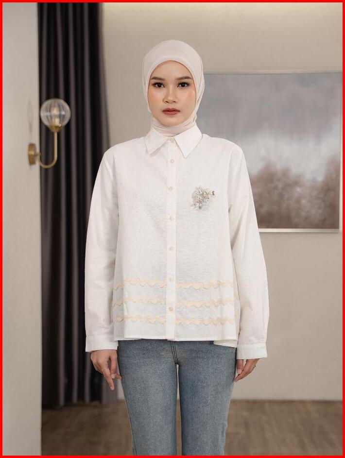 Mayoutfit Aerith Shirt Kemeja Wanita Linen Basic Motif Bordir Embroidery