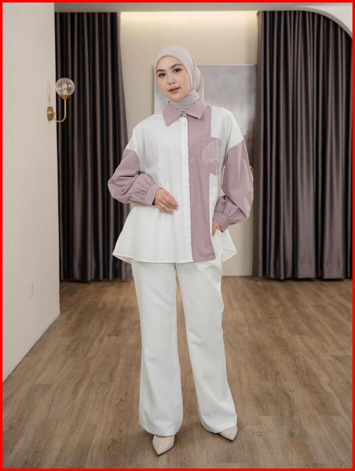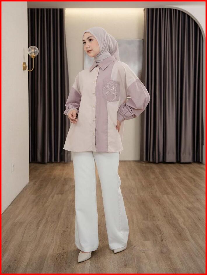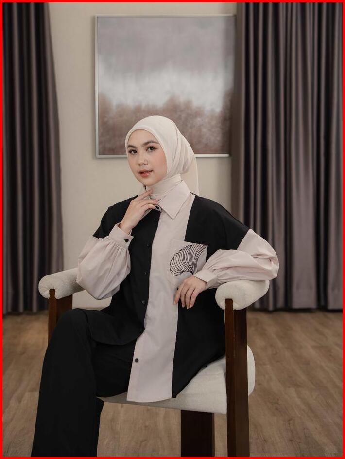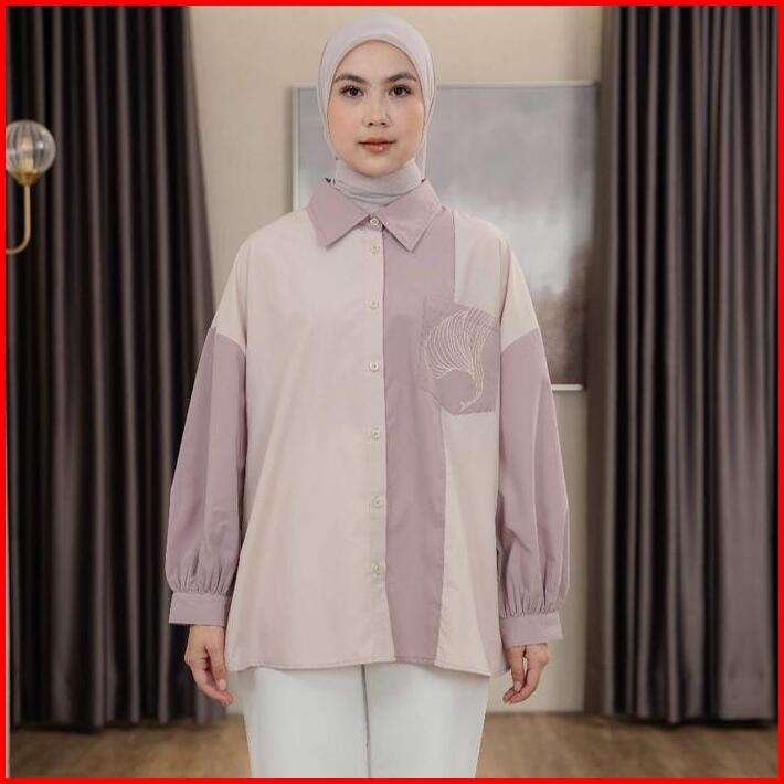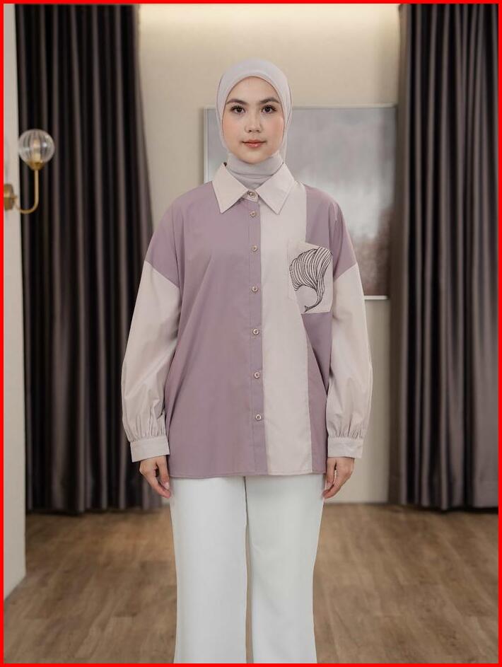 Mayoutfit Caelyn Shirt Kemeja Wanita Basic Kombinasi Two Tone Aksen Saku Bordir Emboidery Pocket