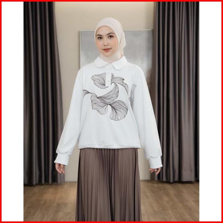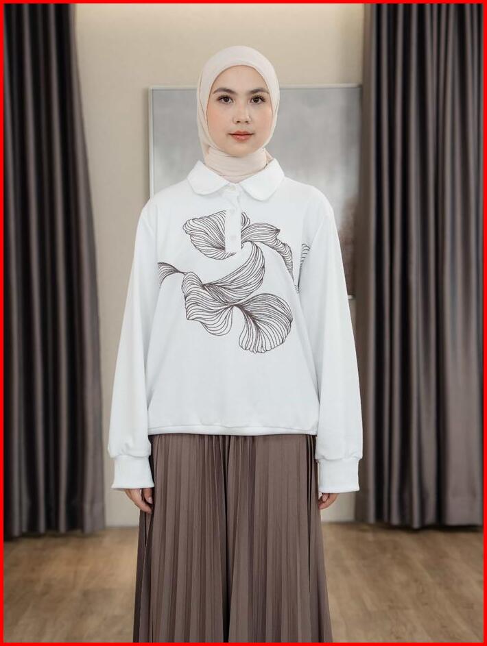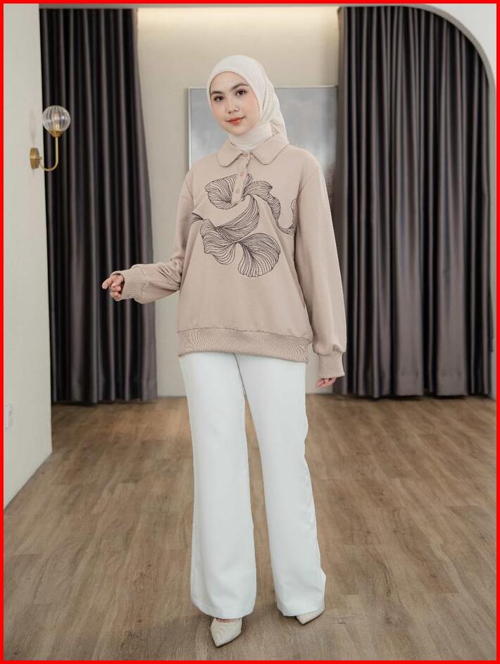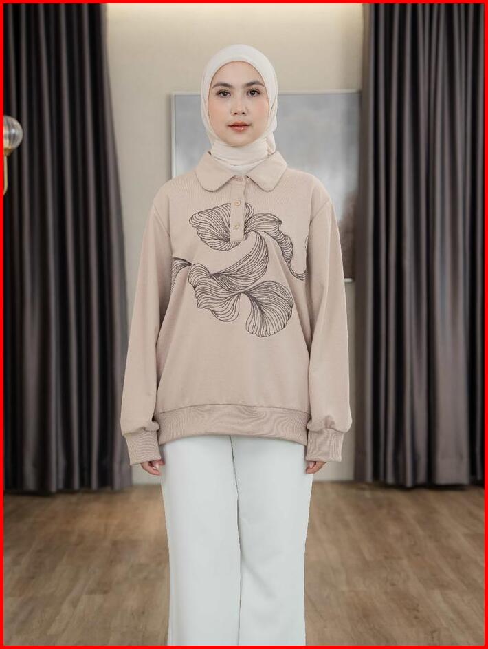 Mayoutfit Eneida Blouse Blus Atasan Wanita Kerah Polo Aksen Bordir