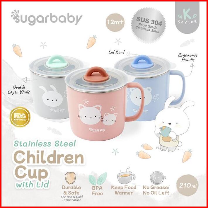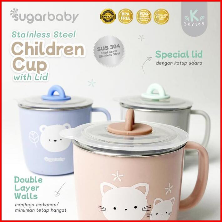 Sugar Baby Stainless Steel Cup With Lid Sugarbaby Gelas Minum Stainless Steel Anak Gelas Minum Anak