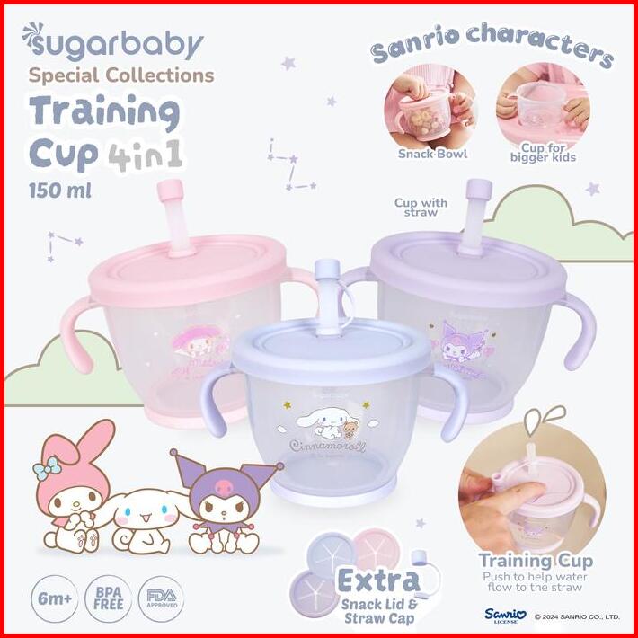 Sugarbaby Training Cup 4in1 Sanrio Collection Gelas Anak Bpa Free Cangkir Bayi Gelas Mpasi Anti Bocor Dan Tumpah Straw T