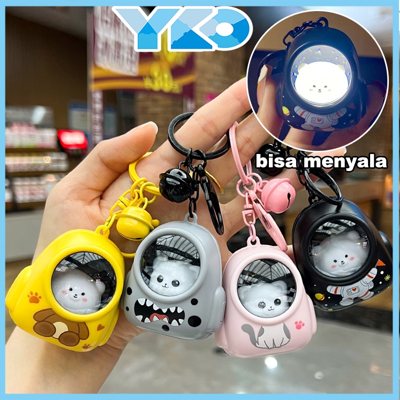 YKO Led Gantungan Kunci Backpack Cat Karakter Keychain Multifungsi Astronot Cute