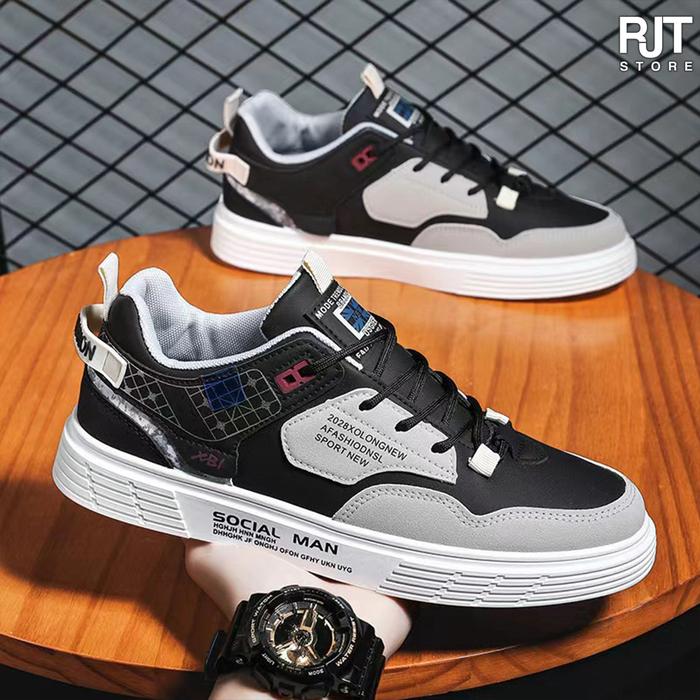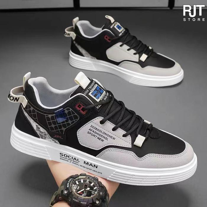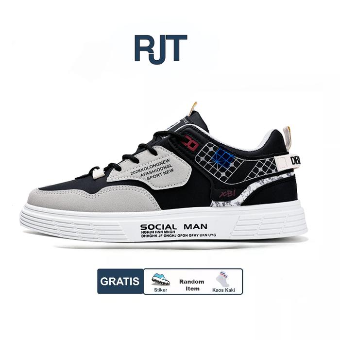 [Star]RJT Store Kobe - Sepatu Sneaker Pria Kasual canvas shoes Casual Running Olahraga Sport - Hitam, 43
