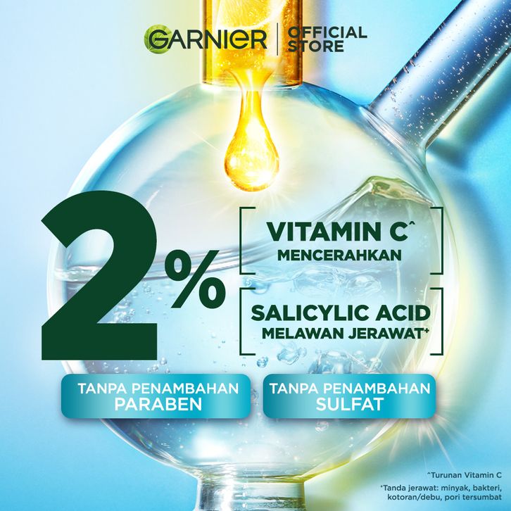 Garnier Bright Complete Anti Acne Gel Wash 120ml 2 Vitamin C + Salicylic - Skincare Sabun Wajah Gel Brightening & Law