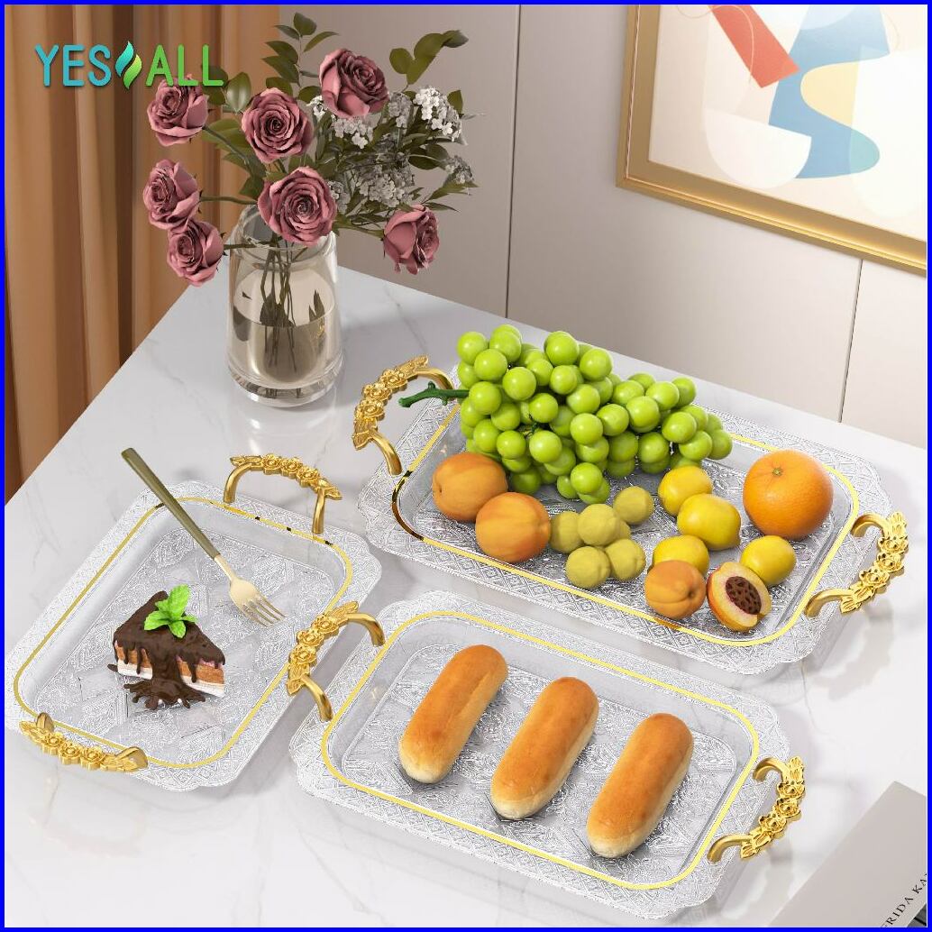 Yesall Nampan Aesthetic Handle - Nampan Saji Mewah Nampan Serbaguna Nampan Persegi Kotak Tray Nampan Piring Nampan Gelas