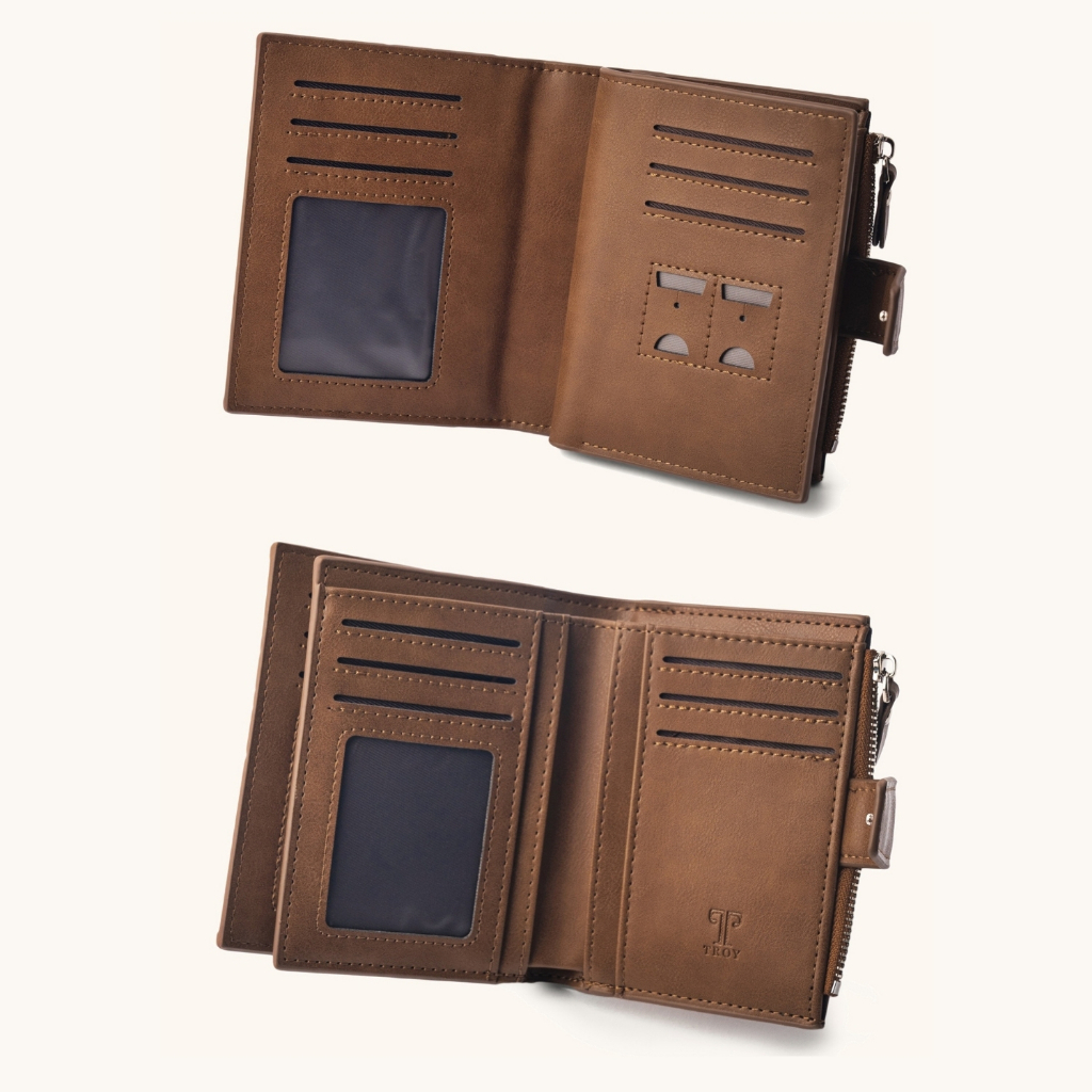 TROY Dompet Lipat Pria Koin Resleting Bahan Kulit PU Original Premium Mewah Awet Hitam Coklat Hyde