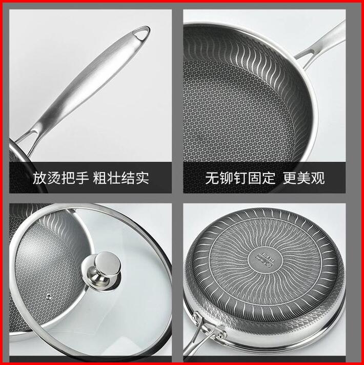 Ms Wajan Stainless Steel 316 Wok Frying Pan Honeycomb Antilengket