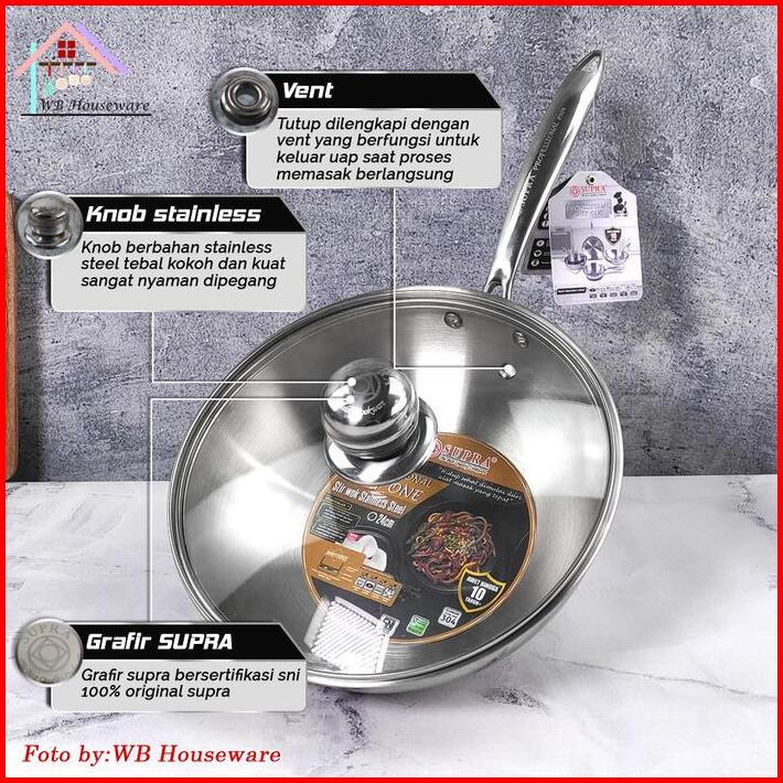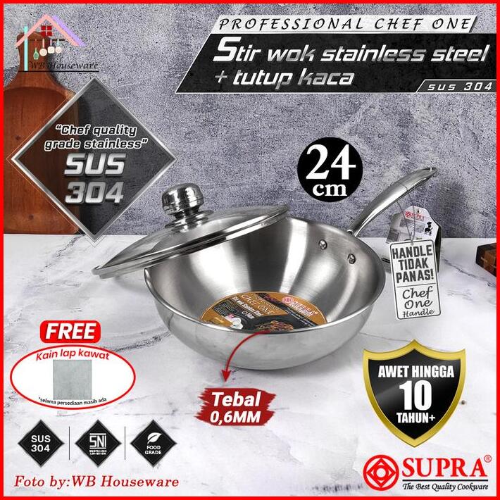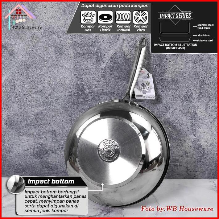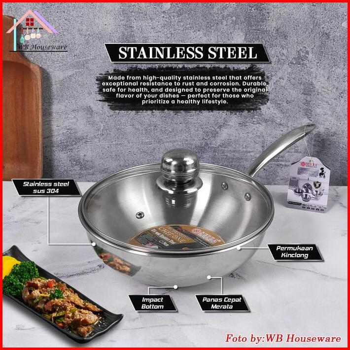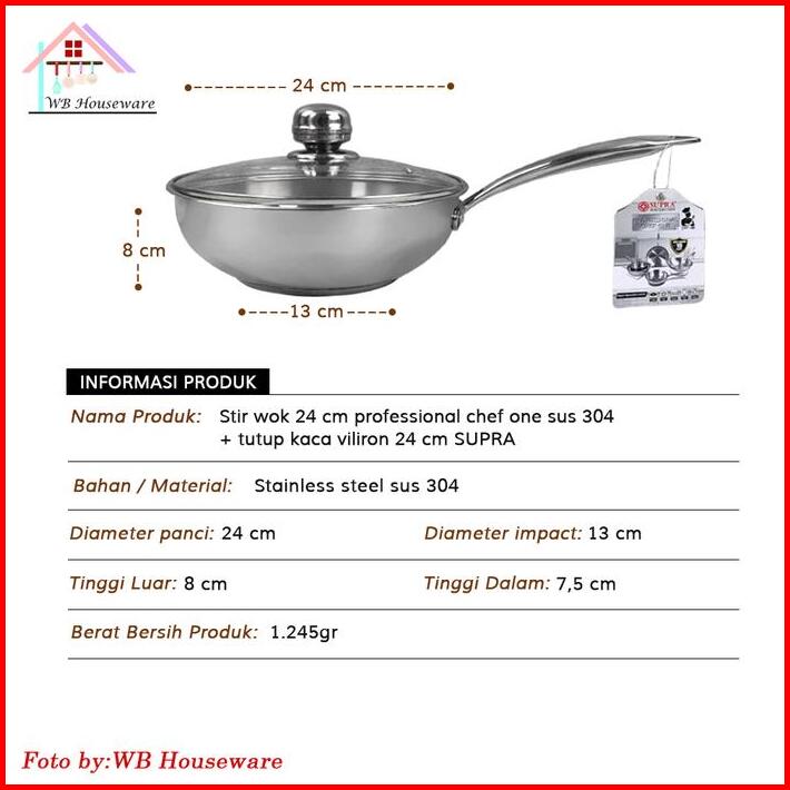 New Panci Stir Wok 24cm Tutup Kaca Viliron Chef One Series Stainless Steel Sus 304 Penggorengan Wajan Gagang Masak