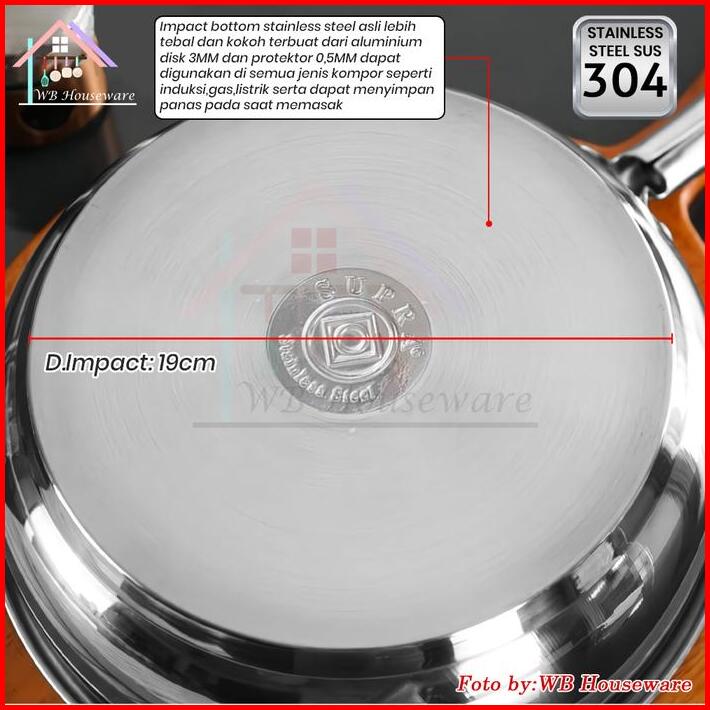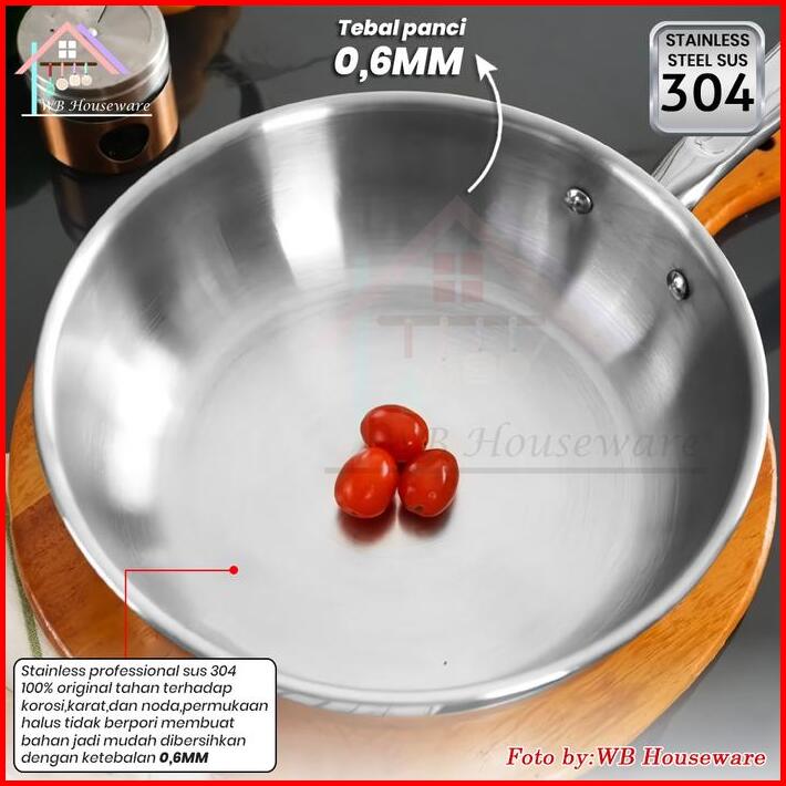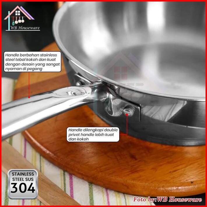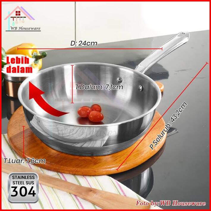Supra New Fry Pan 24cm Stainless Steel Sus 304 Impact Bottom Professional Handle Koko Wajan Masak Penggorengan Kitchenwa