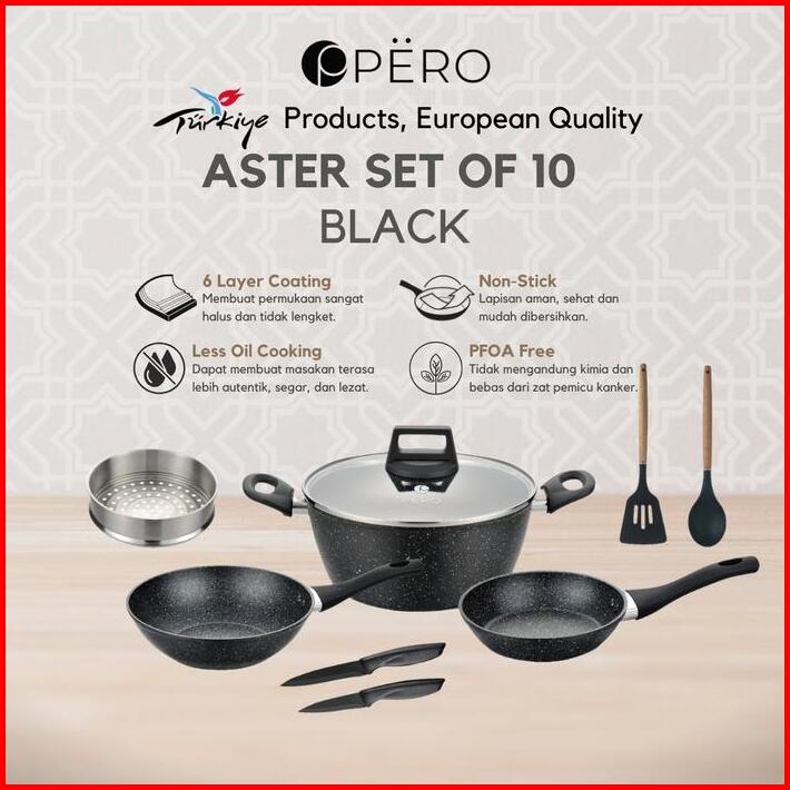 Pero Aster Granite Cookware Set Of 10 Wokpan 24cm Casserole 24cm Frypan 18cm Wajan Set Panci Penggorengan Frypan Dengan
