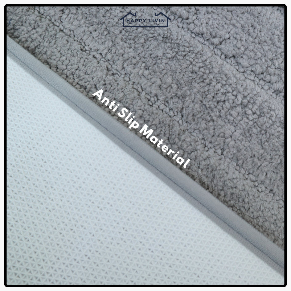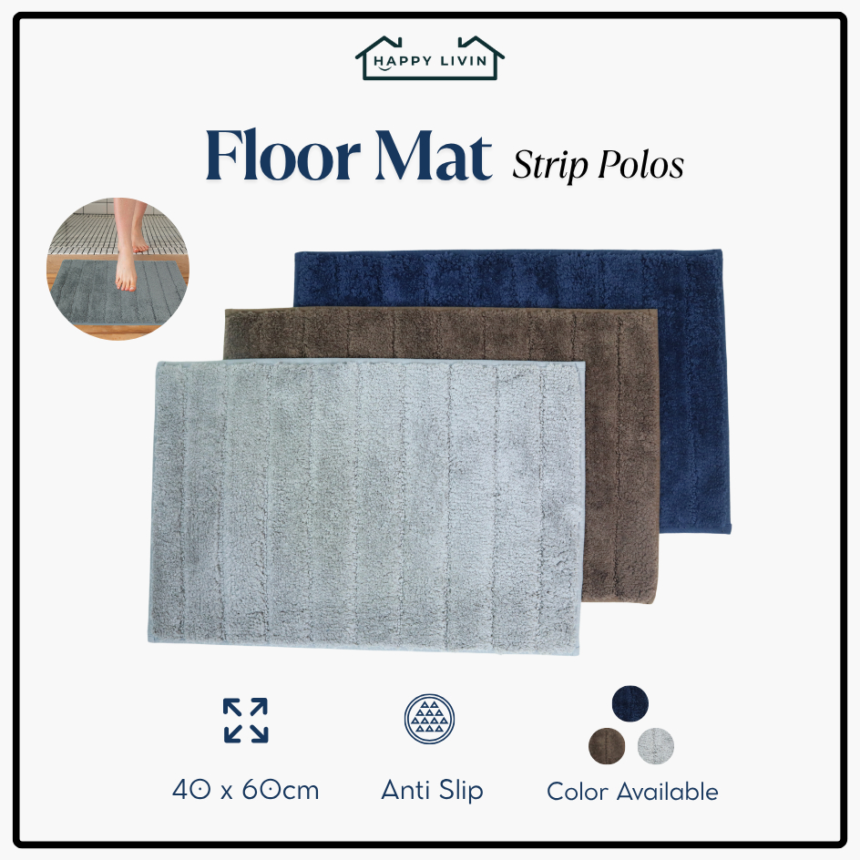 Happy Livin - Premium Floor Mat 40x60cm Keset Kaki Anti Slip Serap Air Keset Bulu Garis Polos