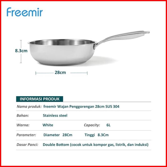 New Freemir Wajan Penggorengan 28 Cm Healthy Cooking Fry Pan Stainless Steel 304 Zero Coating Multifungsi