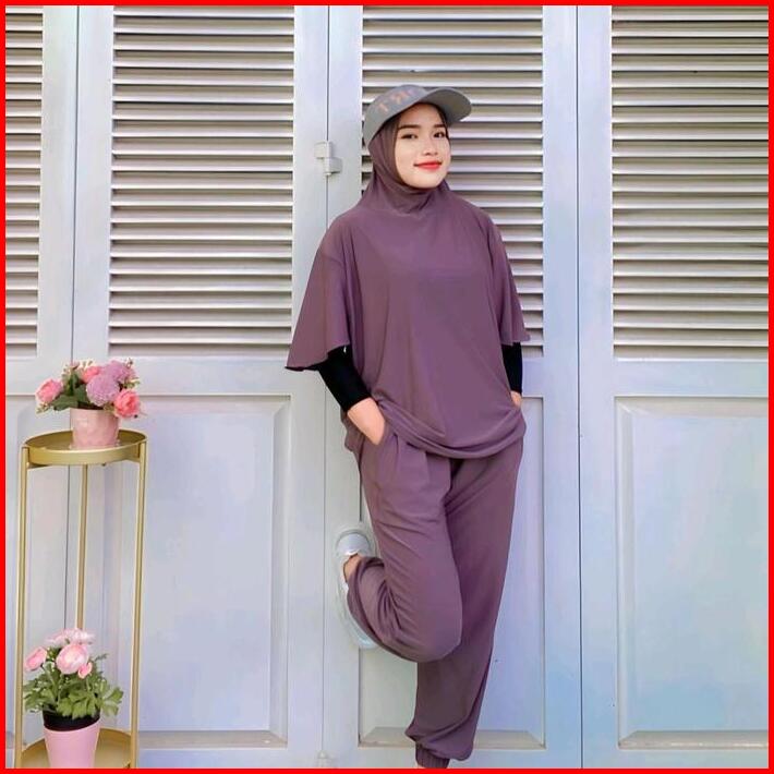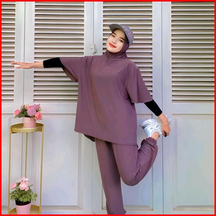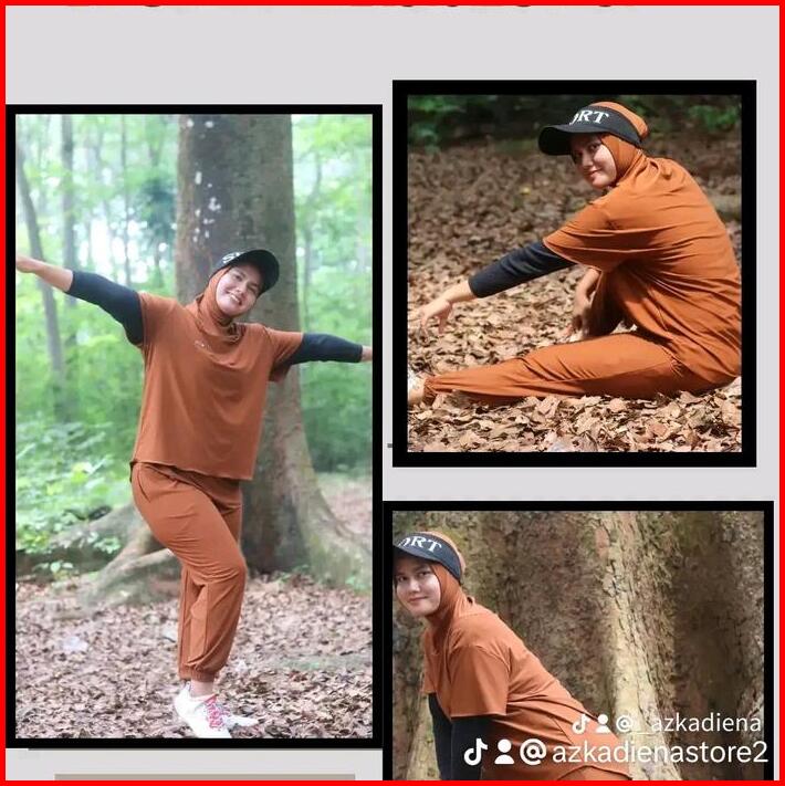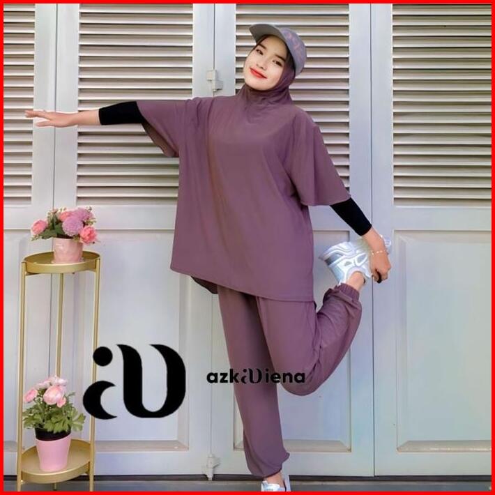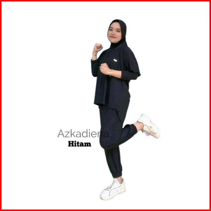 Azkadiena Baju Kaos Setelan Olahraga Neira Wanita Muslimah Polos One Set Jilbab Premium Sporty Baju Olahraga Muslim Atas