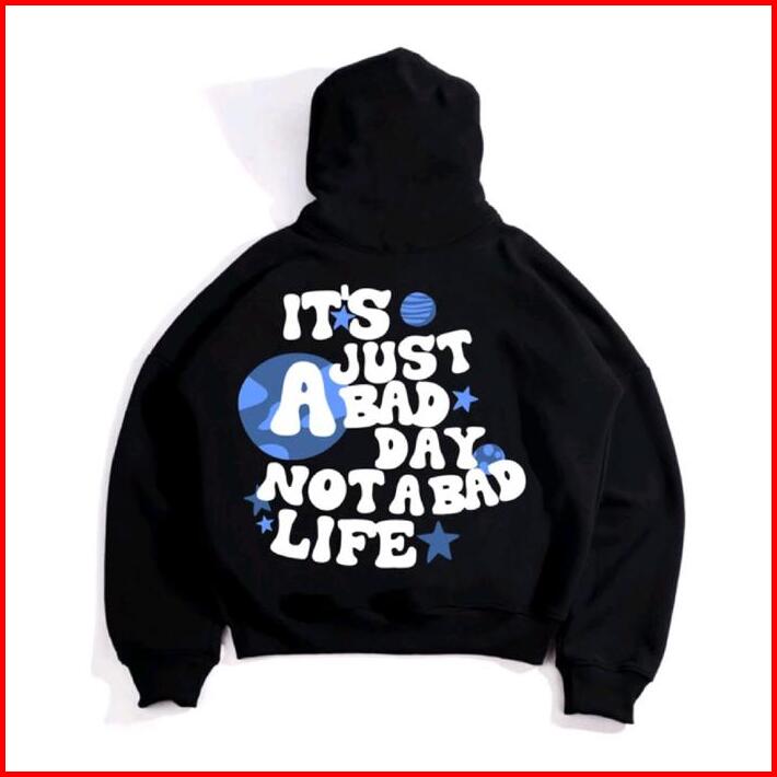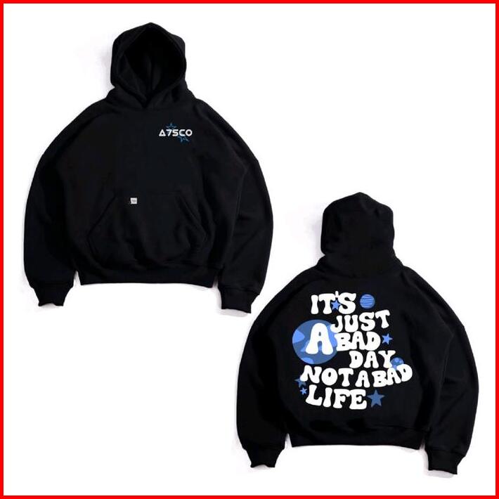 Hoodie Boxy Oversize Not A Bad Life Unisex Pria Wanita Fleece High Quality Katun Fleece Sweater Distro Tangan Panjang