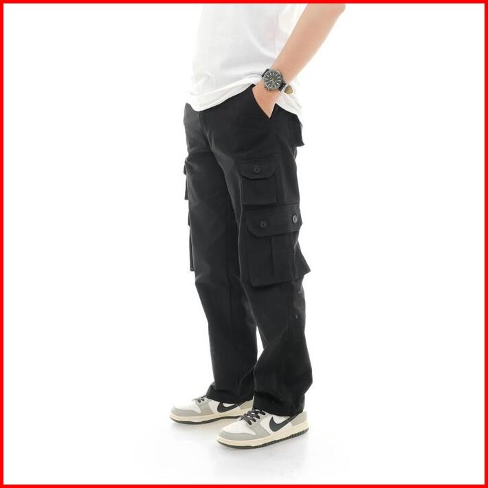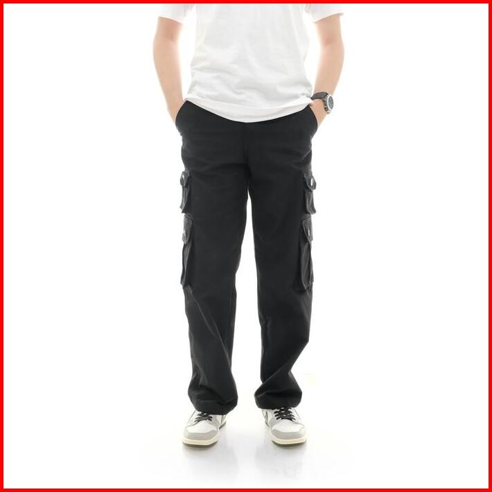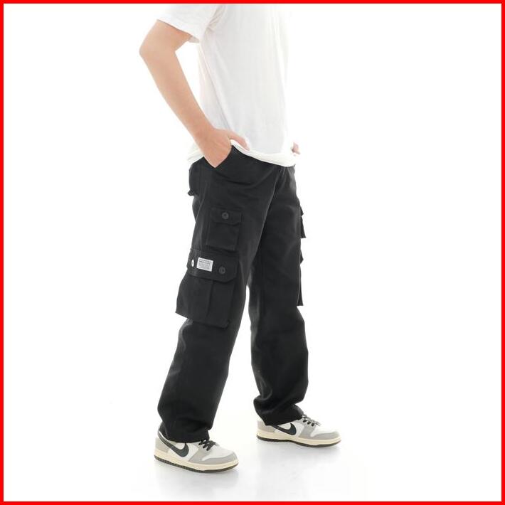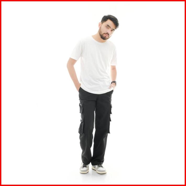 Qwertylife Long Pants Cargo Reguler Twill Pocket Black