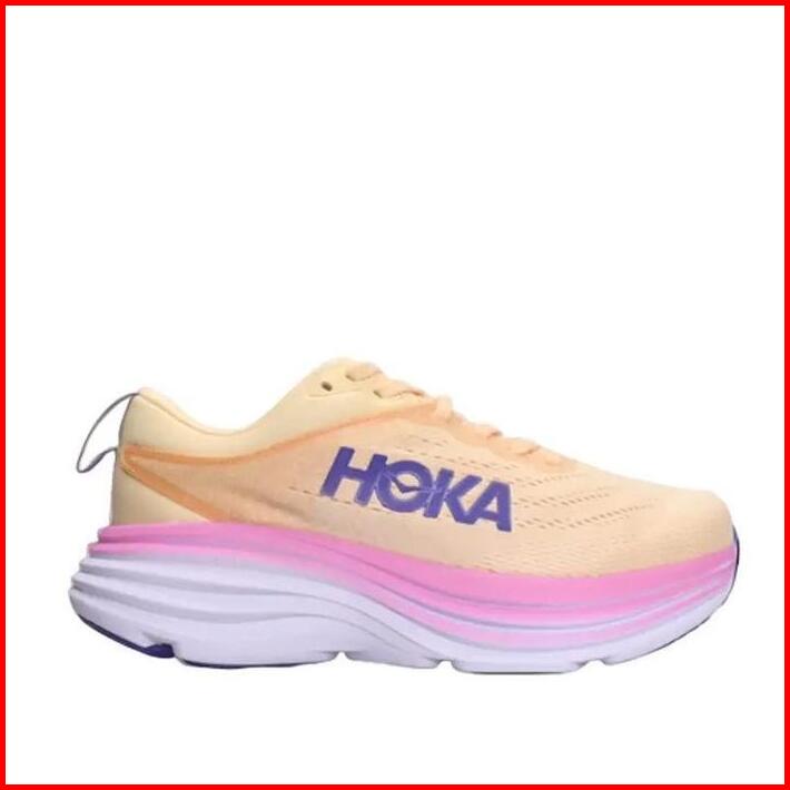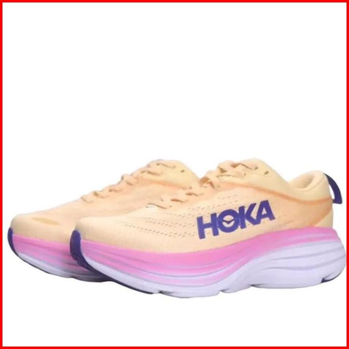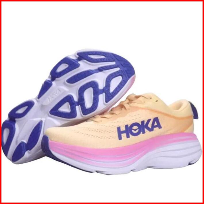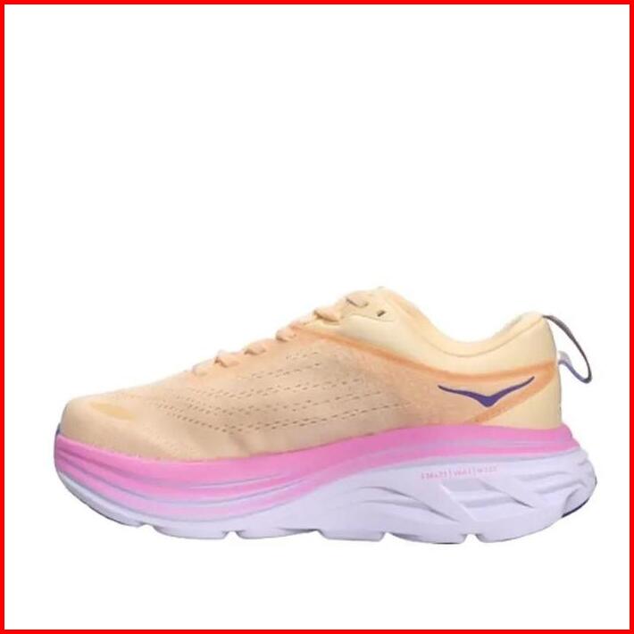 Sepatu Lari Wanita Hoka One One Bondi 8 Yellow Pink Women Running Shoes