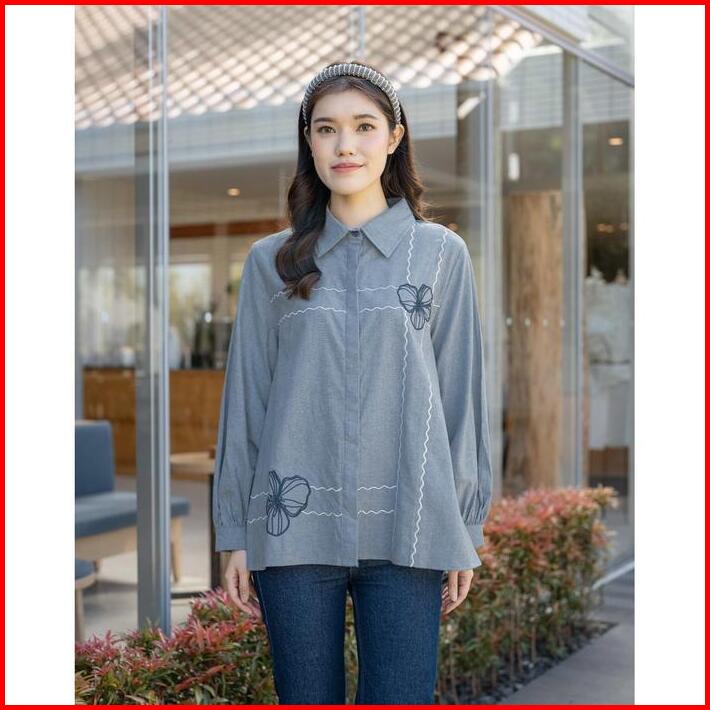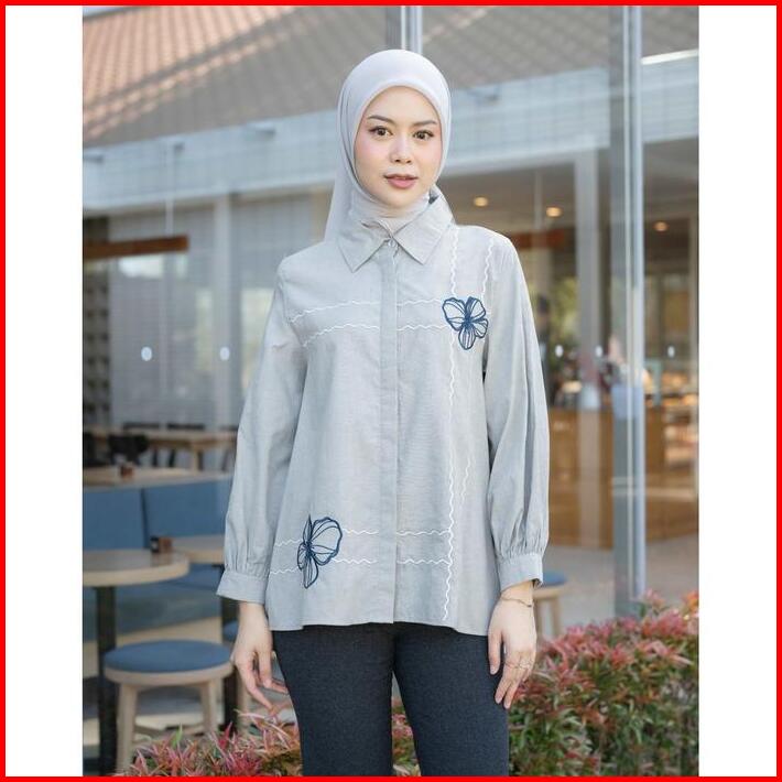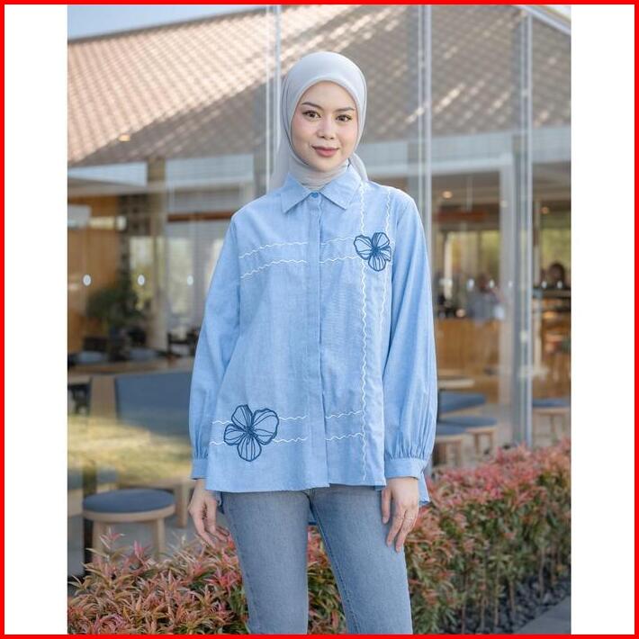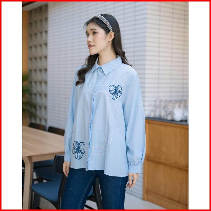 Mayoutfit Devika Shirt Kemeja Katun Basic Wanita Bordir Bunga Embroidery