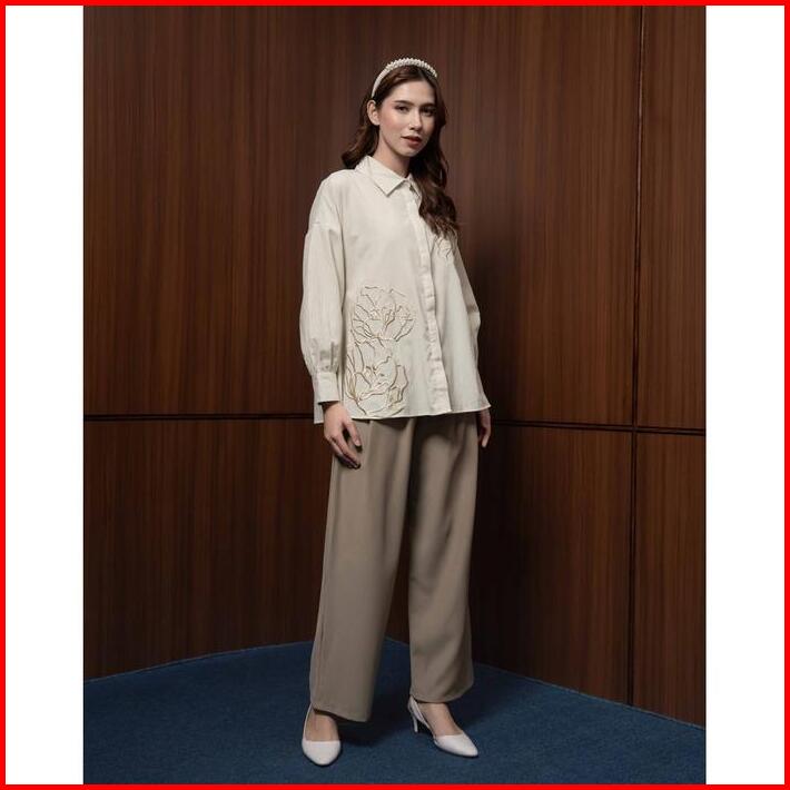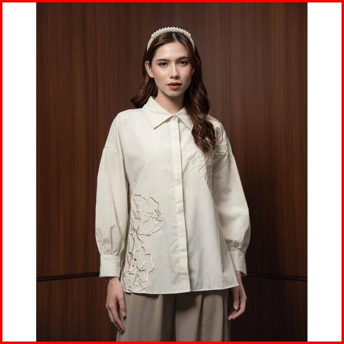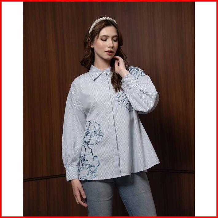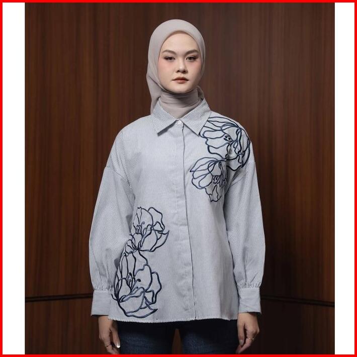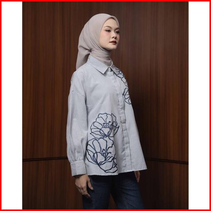 Mayoutfit Sevynca Shirt Kemeja Wanita Stripe Bordir Bunga Embroidery