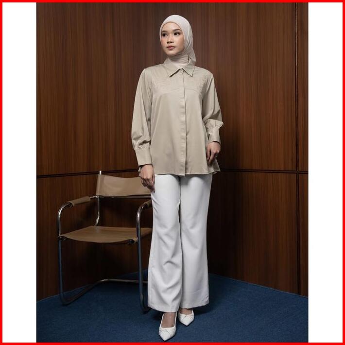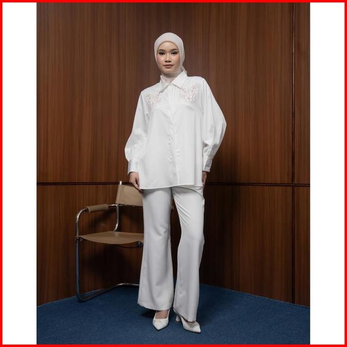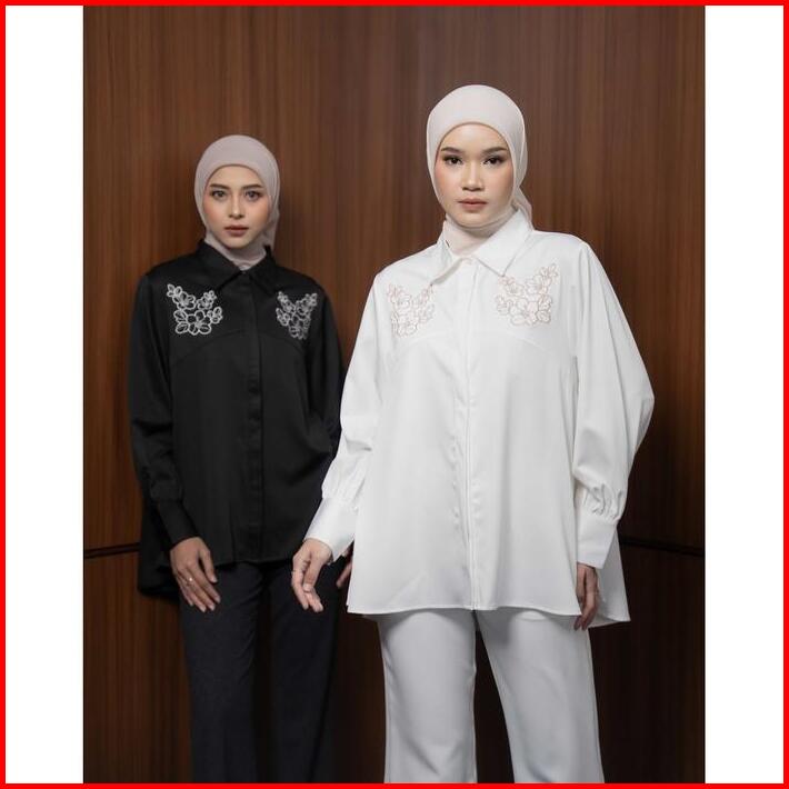 Mayoutfit Saelana Shirt Kemeja Basic Wanita Aksen Bordir Floral Embroidery
