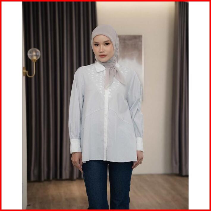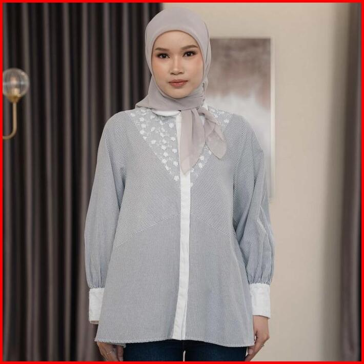 Mayoutfit Vamana Shirt Kemeja Wanita Stripe Katun Konbi Tile Bordir Embroidery