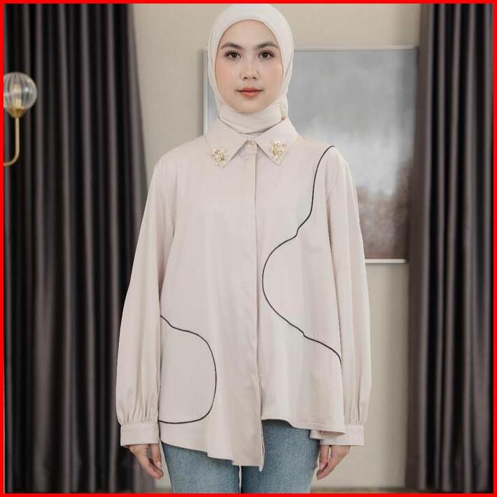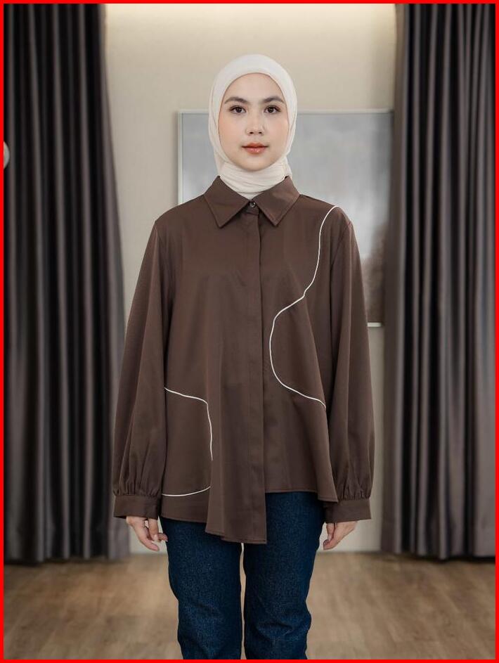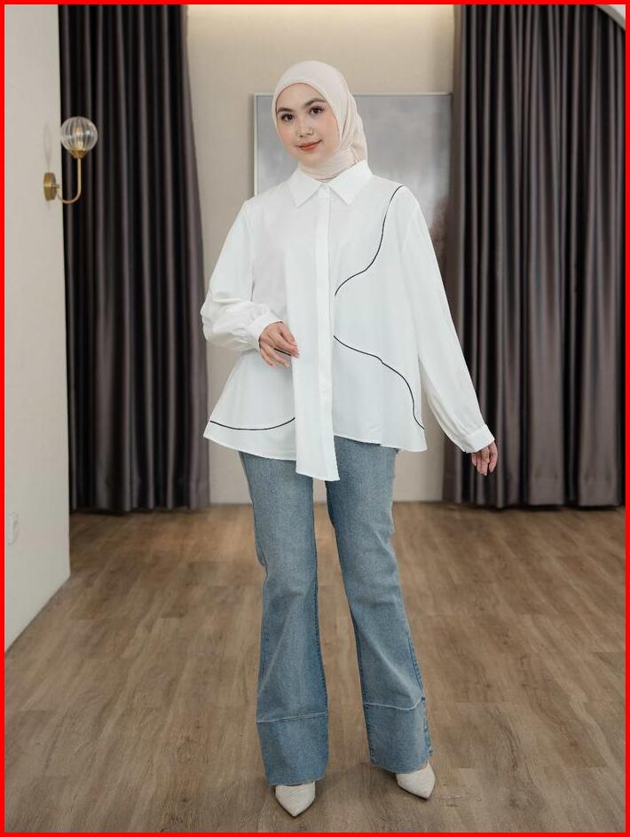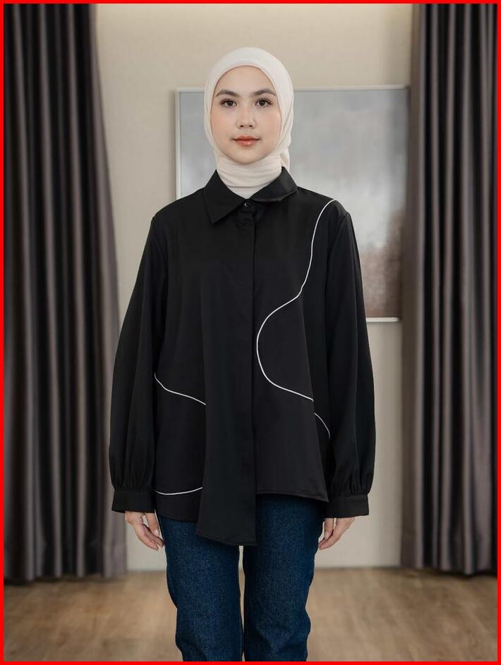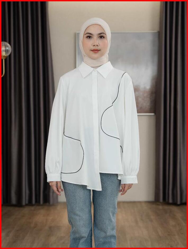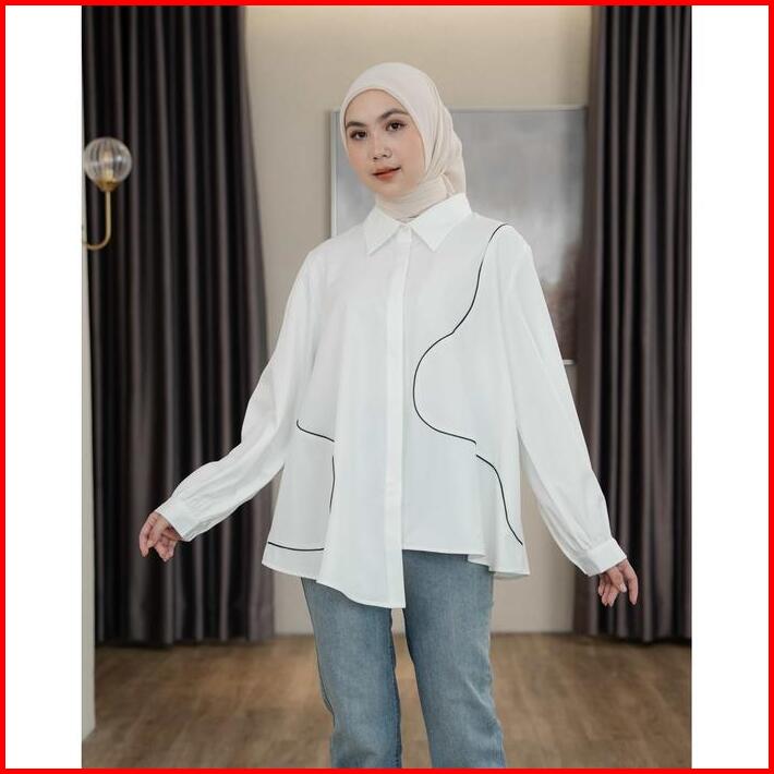 Mayoutfit Eimi Shirt Kemeja Wanita Basic Asimetris Aksen Bordir Line Embroidery