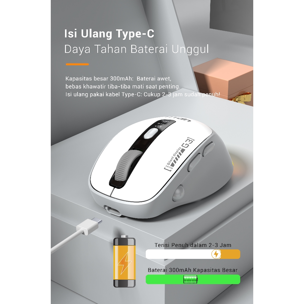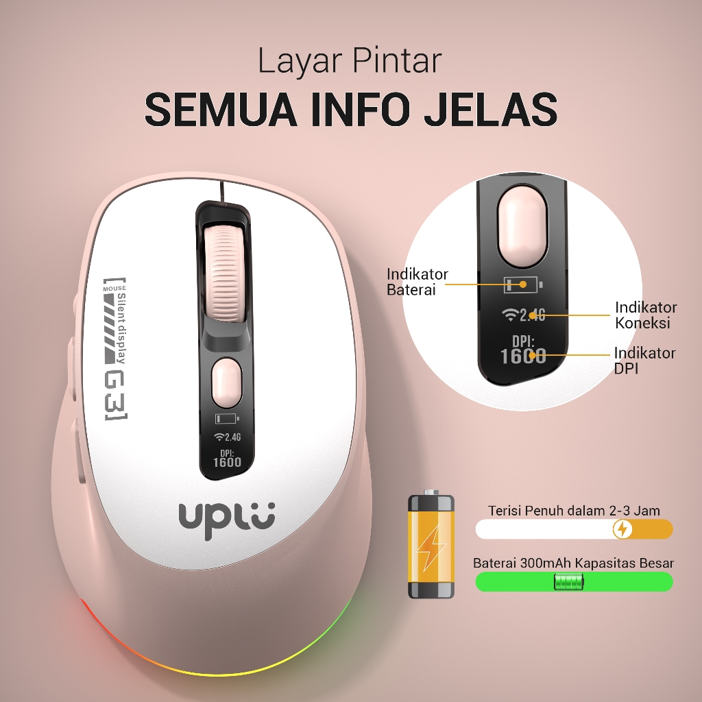 [Mall] EIZAL X UPLU MOUSE GAMING BLUETOOTH WIRELESS G3 MOUSE SILENT CLICK RGB DUAL CONNECTION 1600 DPI
