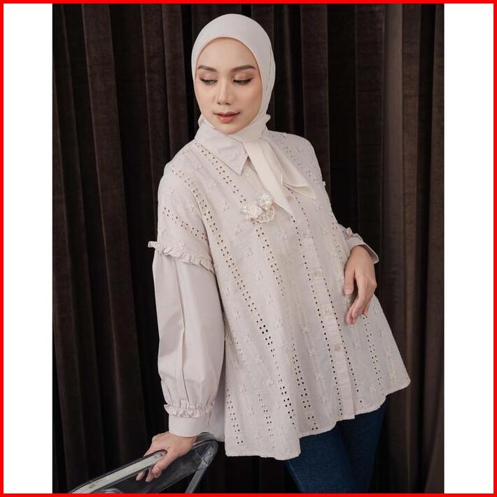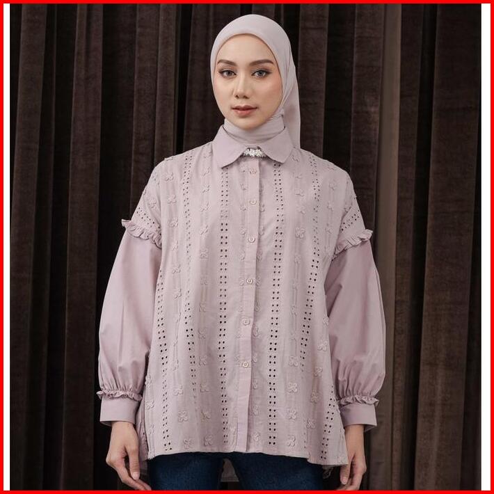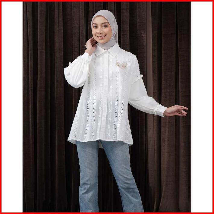 Mayoutfit Elainca Shirt Kemeja Katun Bordir Wanita Oversized Blus