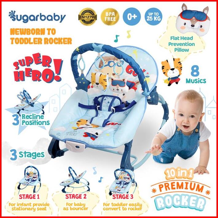 Sugarbaby 10in1 Premium Rocker Ayunan Bayi Bouncer Bayi Kursi Goyang Manual Bayi