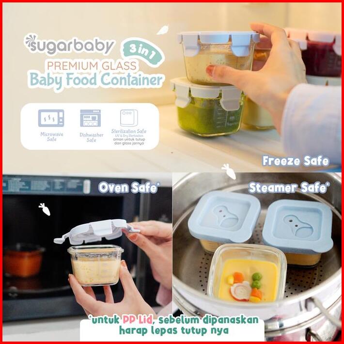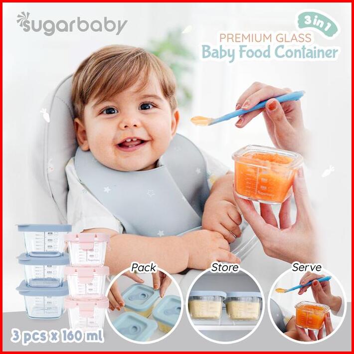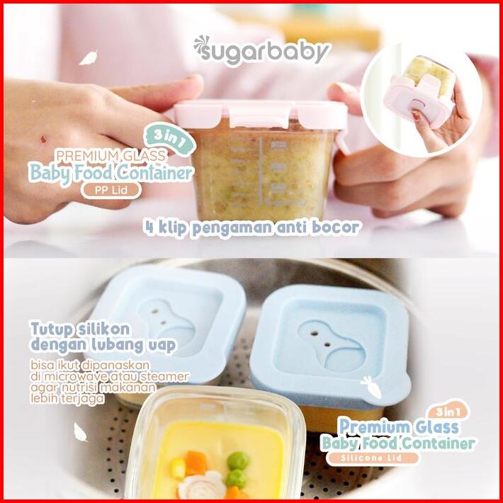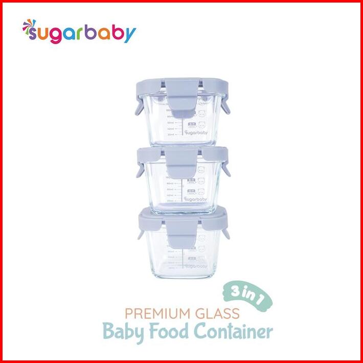Sugar Baby Premium Glass Jar Baby Food Container 3 Pcs Bpa Free Peralatan Makan Bayi Mpasi Wadah Mangkok Bayi Silicone L