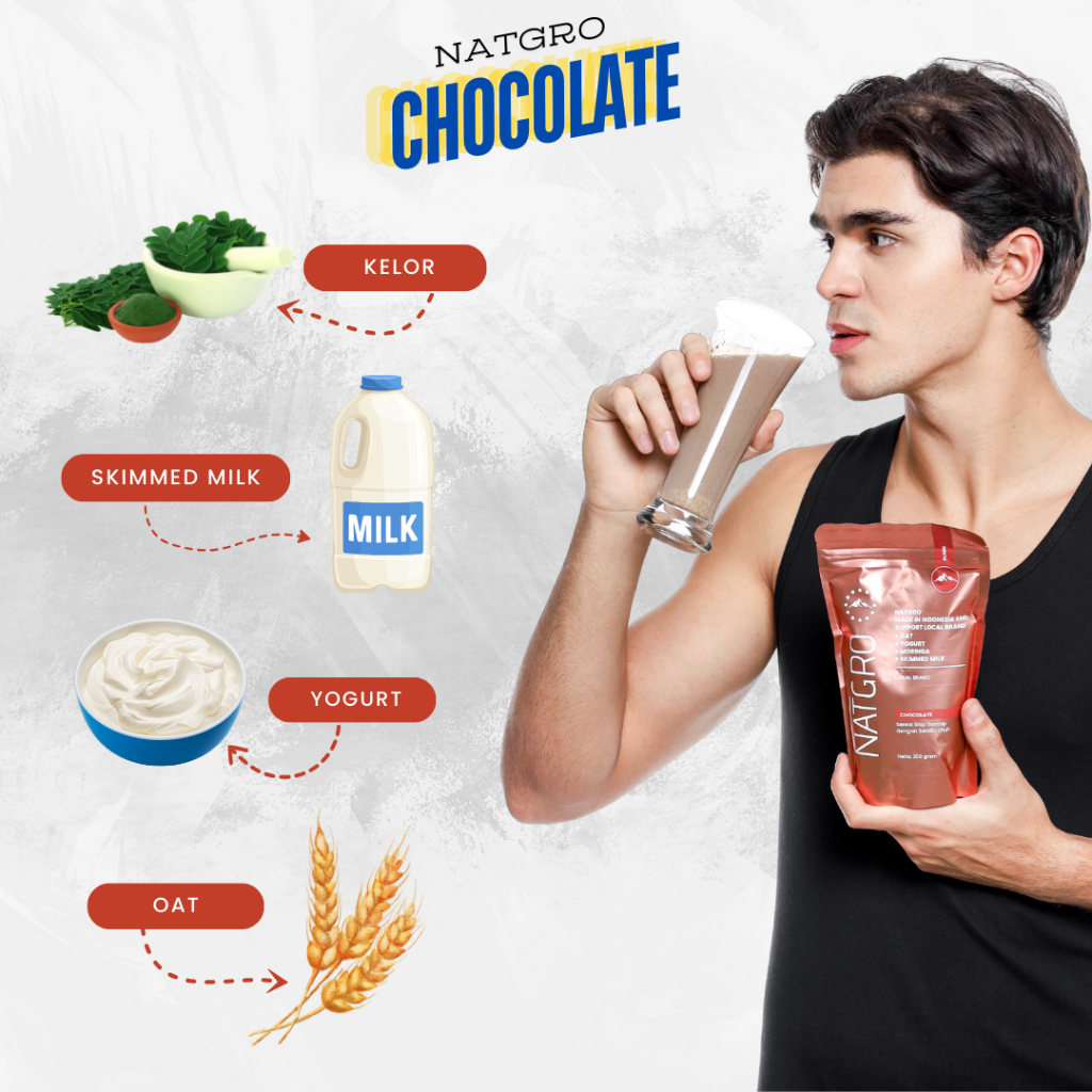 Susu Sereal Peninggi Badan Natural / Alamon NATGRO /200g /Kelor, Skimmed Milk with Yogurt, Oat, & Raspberry
