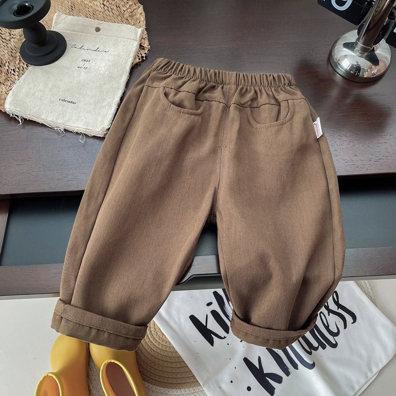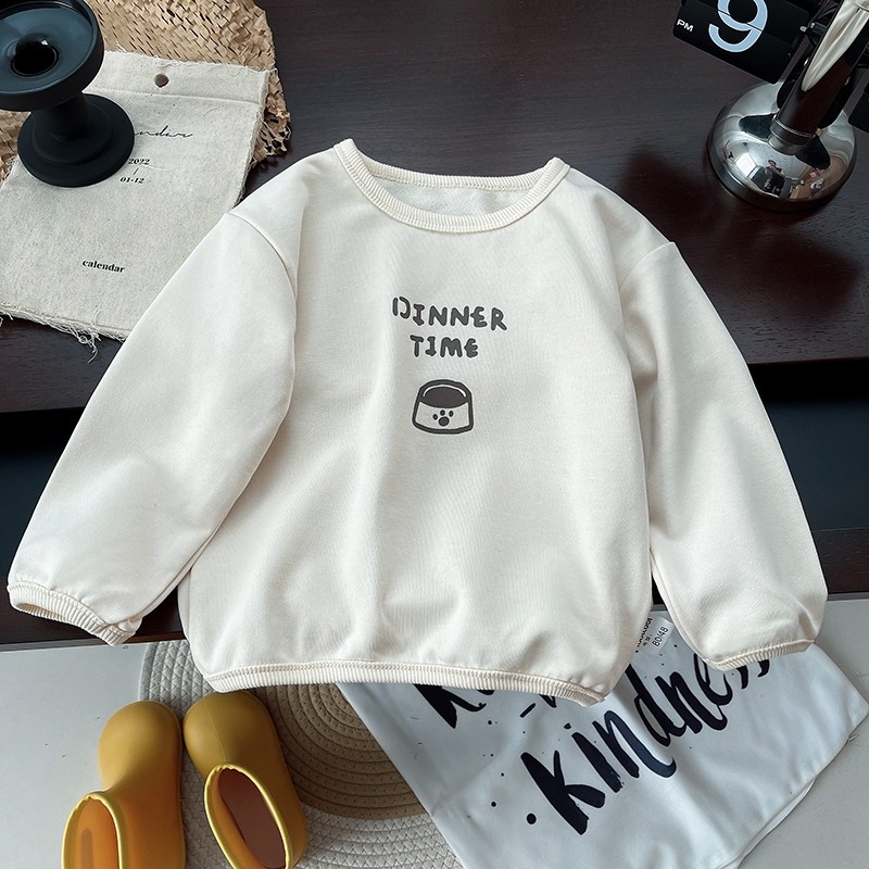 Setelan Kaos Anak Laki Laki Import Kaos Lengan Panjang Polos Tulisan Dinner Time Dengan Celana Panjang Cokelat