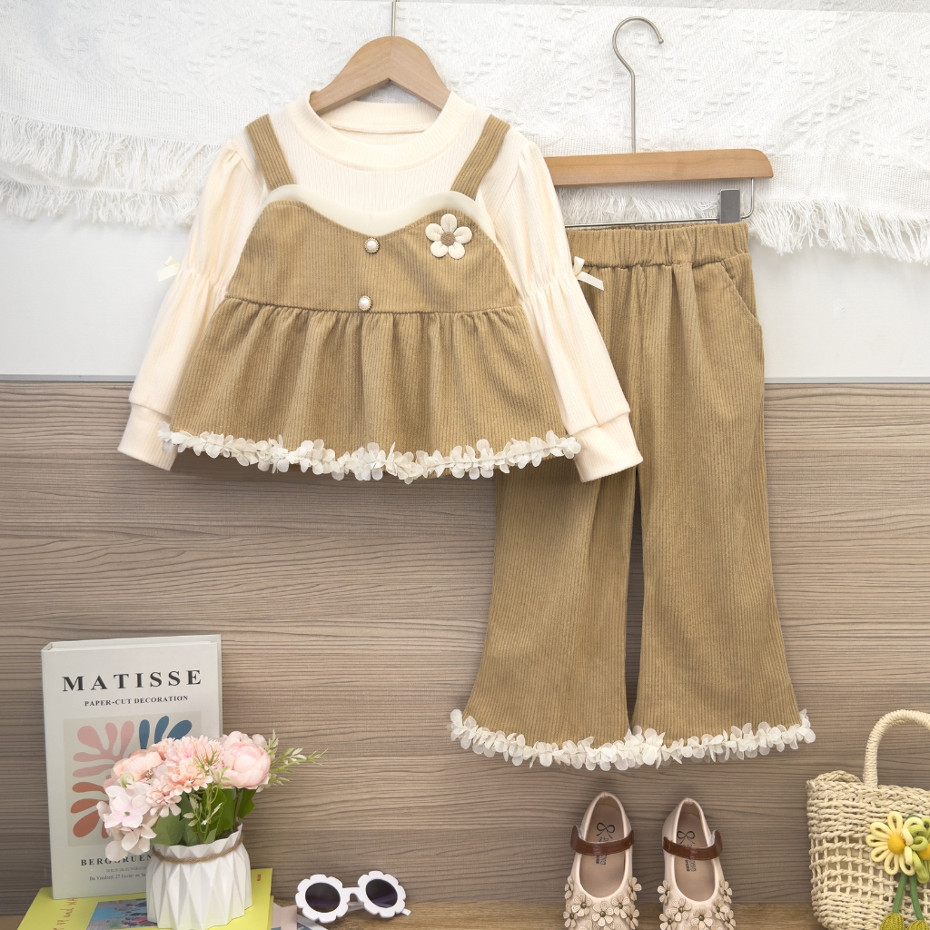 KF CAT Setelan Anak Perempuan Gaya Korea 2in1 - Atasan Katun Beludru + Celana Panjang Usia 1-5thn