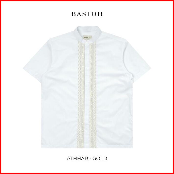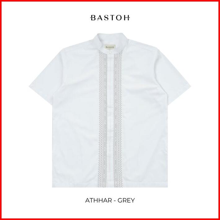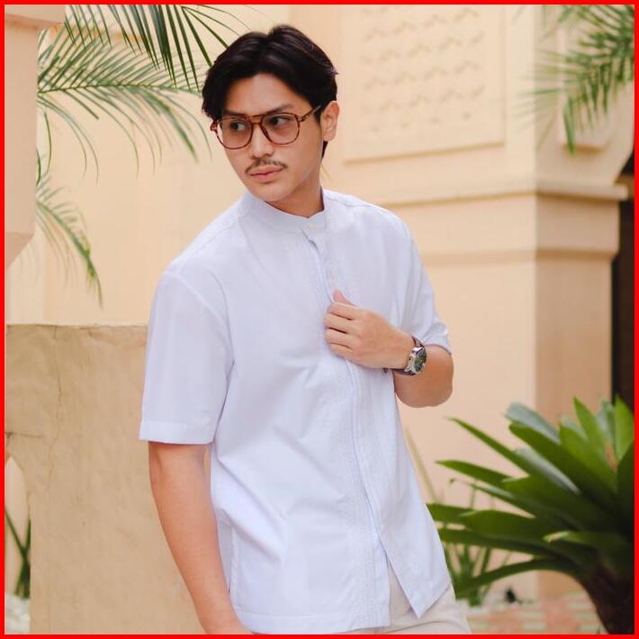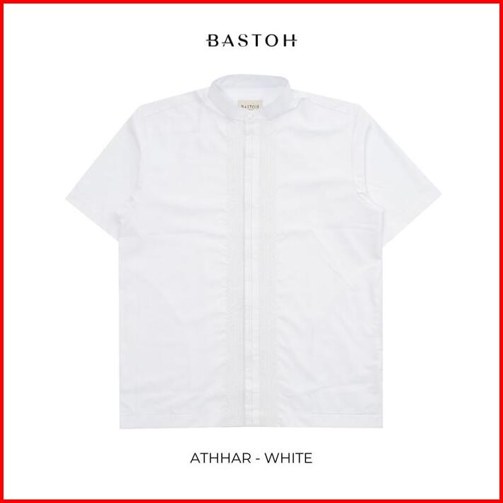 Bastoh Baju Koko Pria Bordir Athhar Lengan Pendek Putih