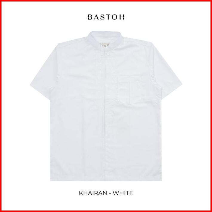 Bastoh Baju Koko Pria Bordir Khairan Lengan Pendek Warna Putih